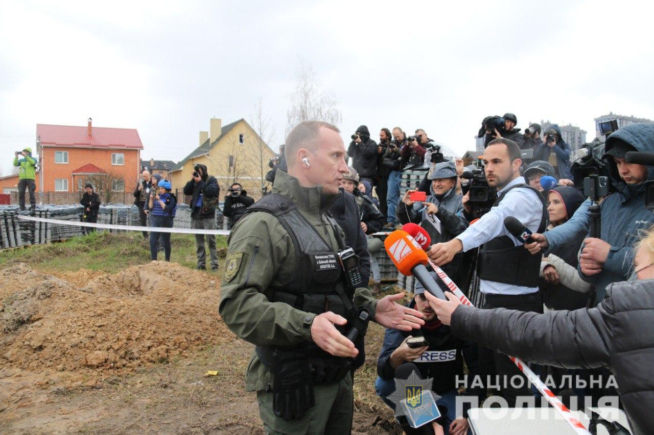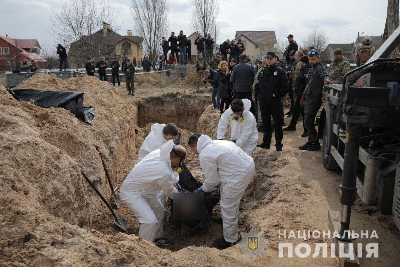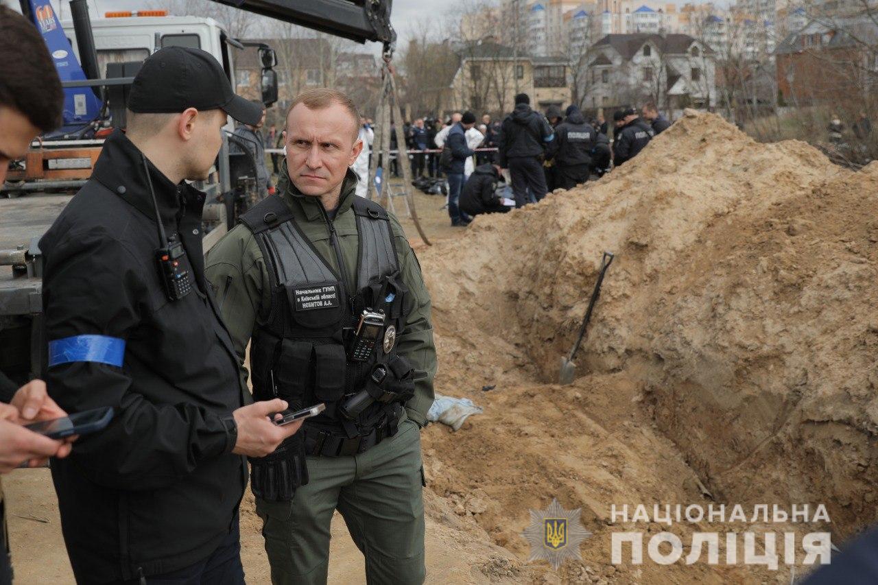 Сьогодні, 8 квітня, поліція Київщини провела огляд загиблих в одному з найбільш масштабних захоронень цивільних осіб, вбитих під час бойових дій.