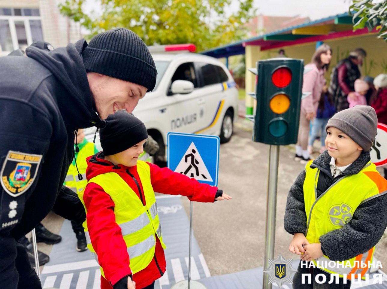 Під час зустрічі поліцейські пояснили для малечі основні правила дорожнього руху, які необхідно знати в їхньому віці. Діти дізналися, як безпечно переходити дорогу та вивчили сигнали регулювальника.