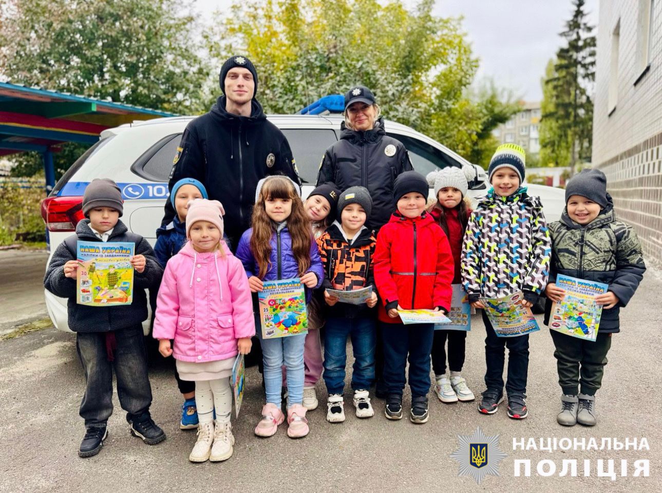 Особливе захоплення у дошкільнят викликав службовий автомобіль поліції, за кермом якого вони відчули себе справжніми правоохоронцями. На завершення інспектори подарували дітям патріотичні розмальовки з наліпками.