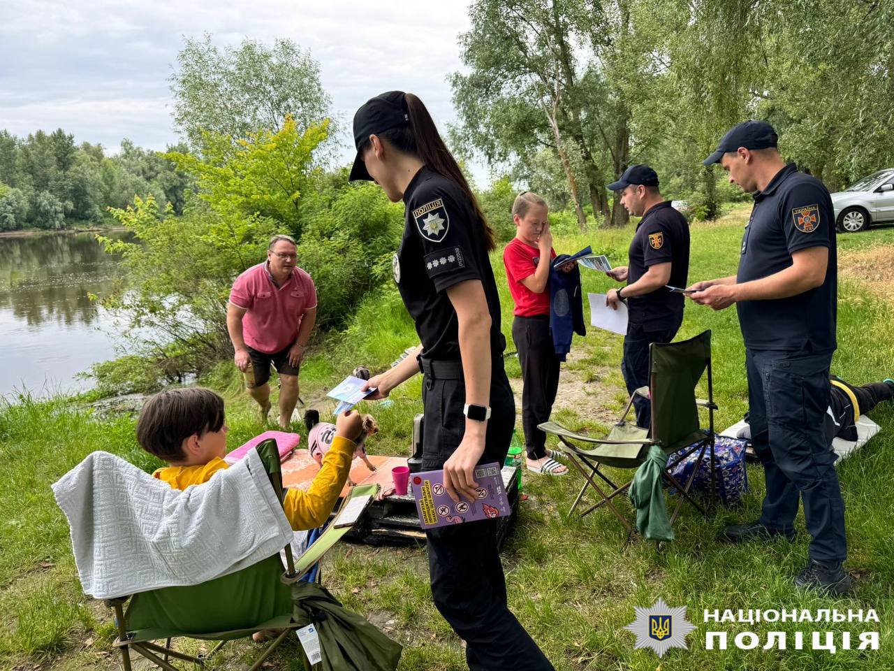 Поліцейська та рятувальники поспілкувалися з дітьми й дорослими та нагадали їм основні правила безпечного відпочинку. Працівниця поліції закликала батьків пильнувати за дітьми та не допускати випадків купання малечі без нагляду дорослих.