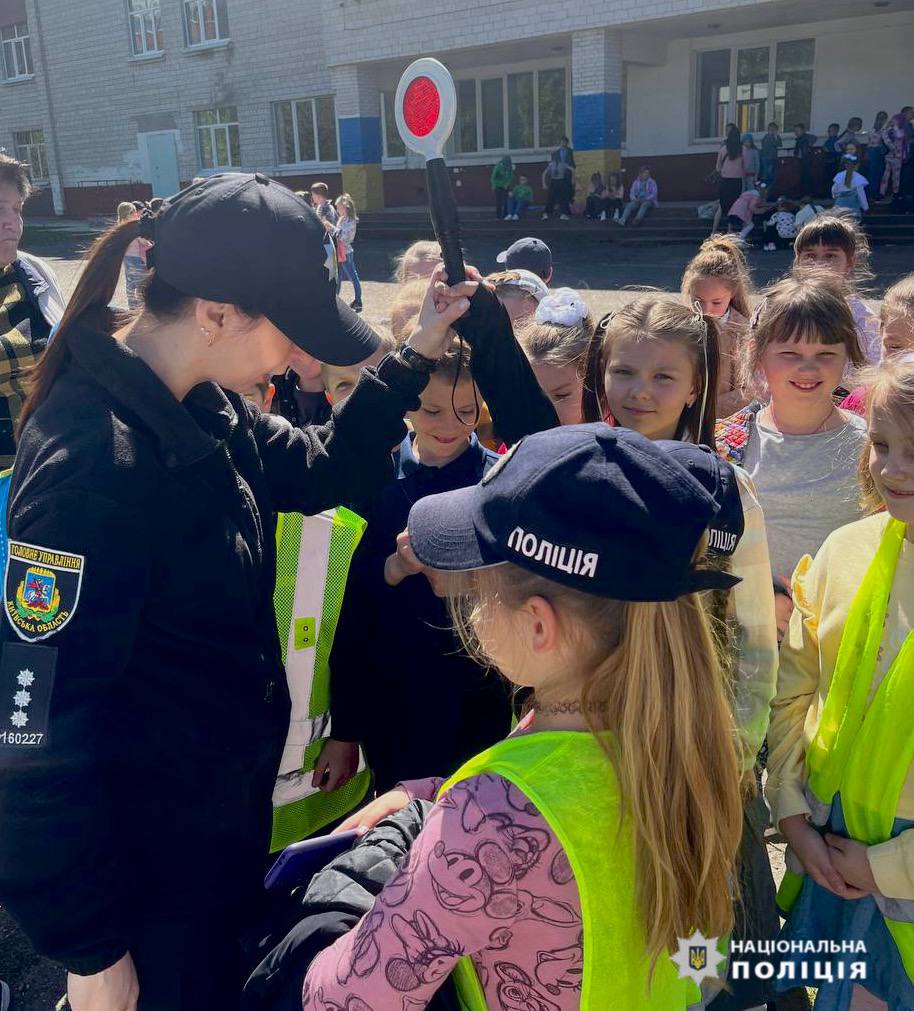 Правоохоронці показали школярам макети дорожніх знаків, світлофорів, спецзасобів для регулювання — пояснили принцип дії кожного з елементів. Наприкінці лекції поліцейські надали можливість кожній дитині спробувати себе в ролі поліцейського, який охороняє порядок на дорогах.