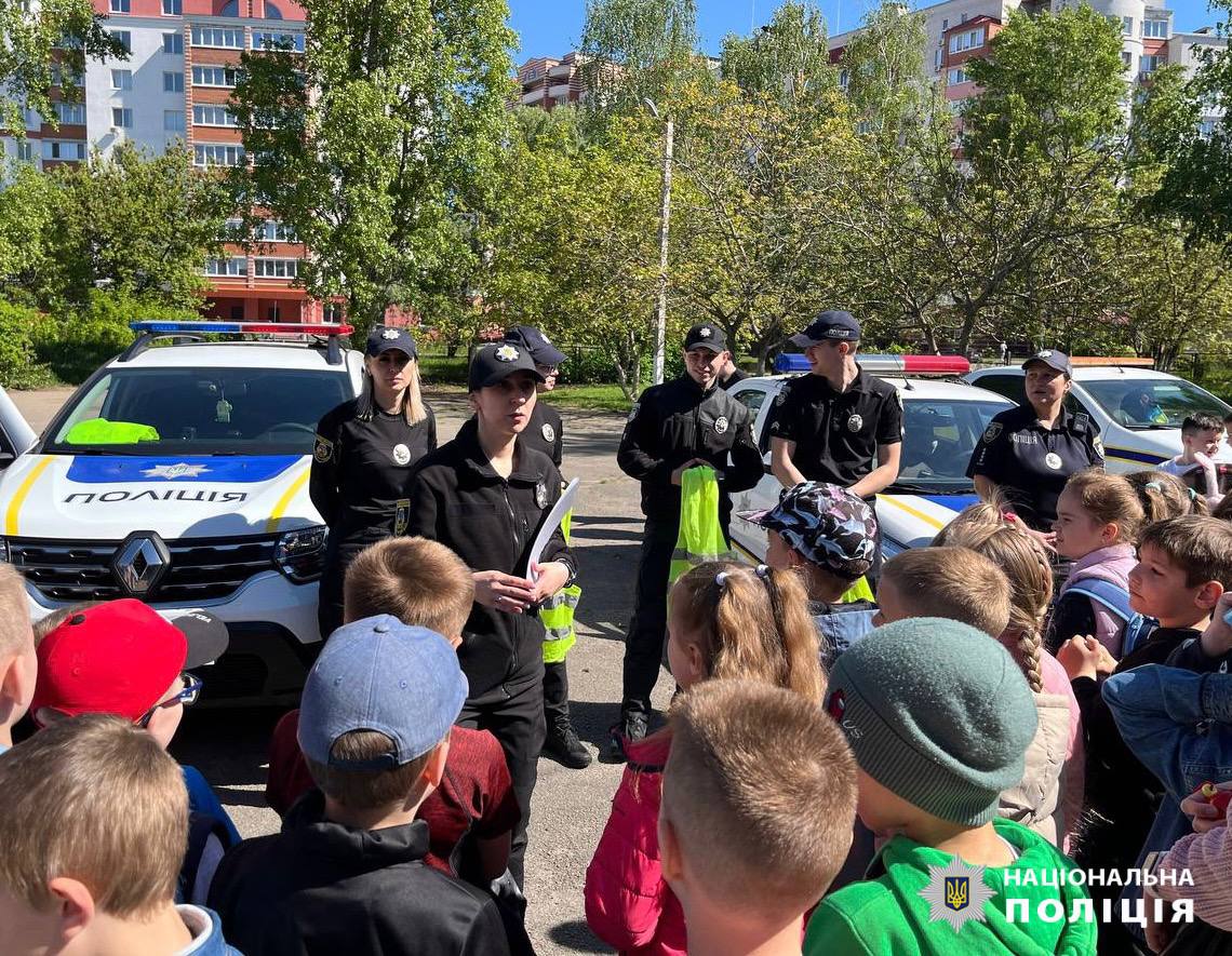 Згодом правоохоронці поговорили з дітьми про те як відповідально поводитись на водних об’єктах, майданчиках для гри та вдома. Також наголосили на умовах воєнного стану: нагадали про правила поводження під час виявлення небезпечних предметів, необхідність прямувати до укриття під час повітряної тривоги.
