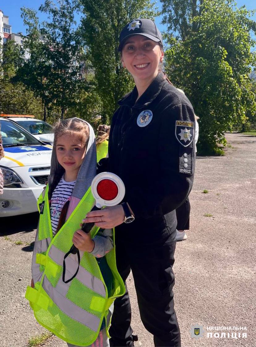 Ювенальна поліцейська Бучанського управління Юлія Рожко, спільно з офіцерами громади Тамарою Тютюнник, Артемом Тимофєєвим, дільничною Мариною Олесіюк та курсантами НАВС поговорили з дітьми про безпеку дорожнього руху.