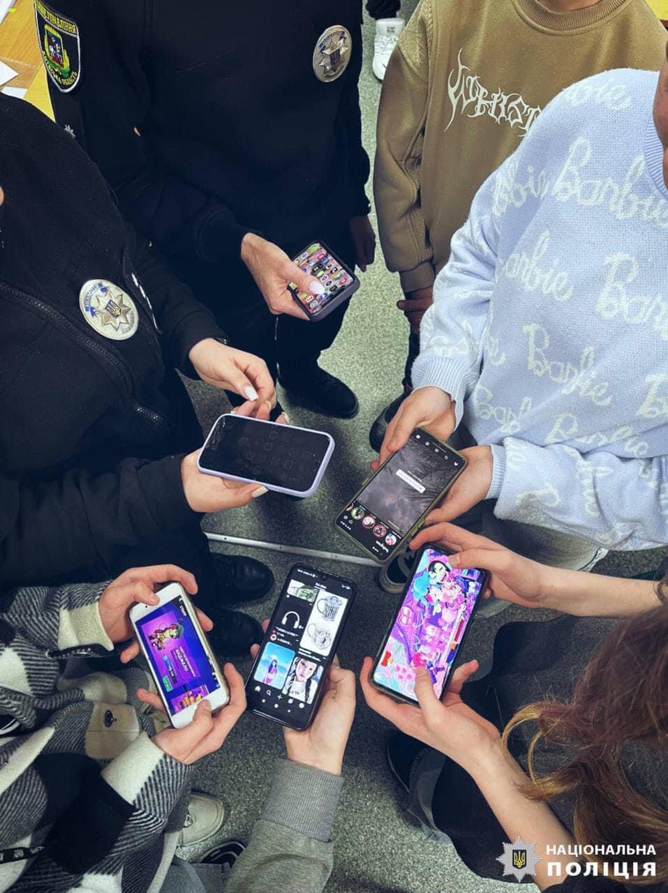 Під час бесіди поліцейські відмітили основні онлайн-ризики, а саме: суїцидальні та екстремістські групи, кібербулінг, інтернет-шахрайство, прояви сексуального насилля через чати в мережі та інші небезпеки, з якими можуть стикатися діти під час користування Інтернетом.