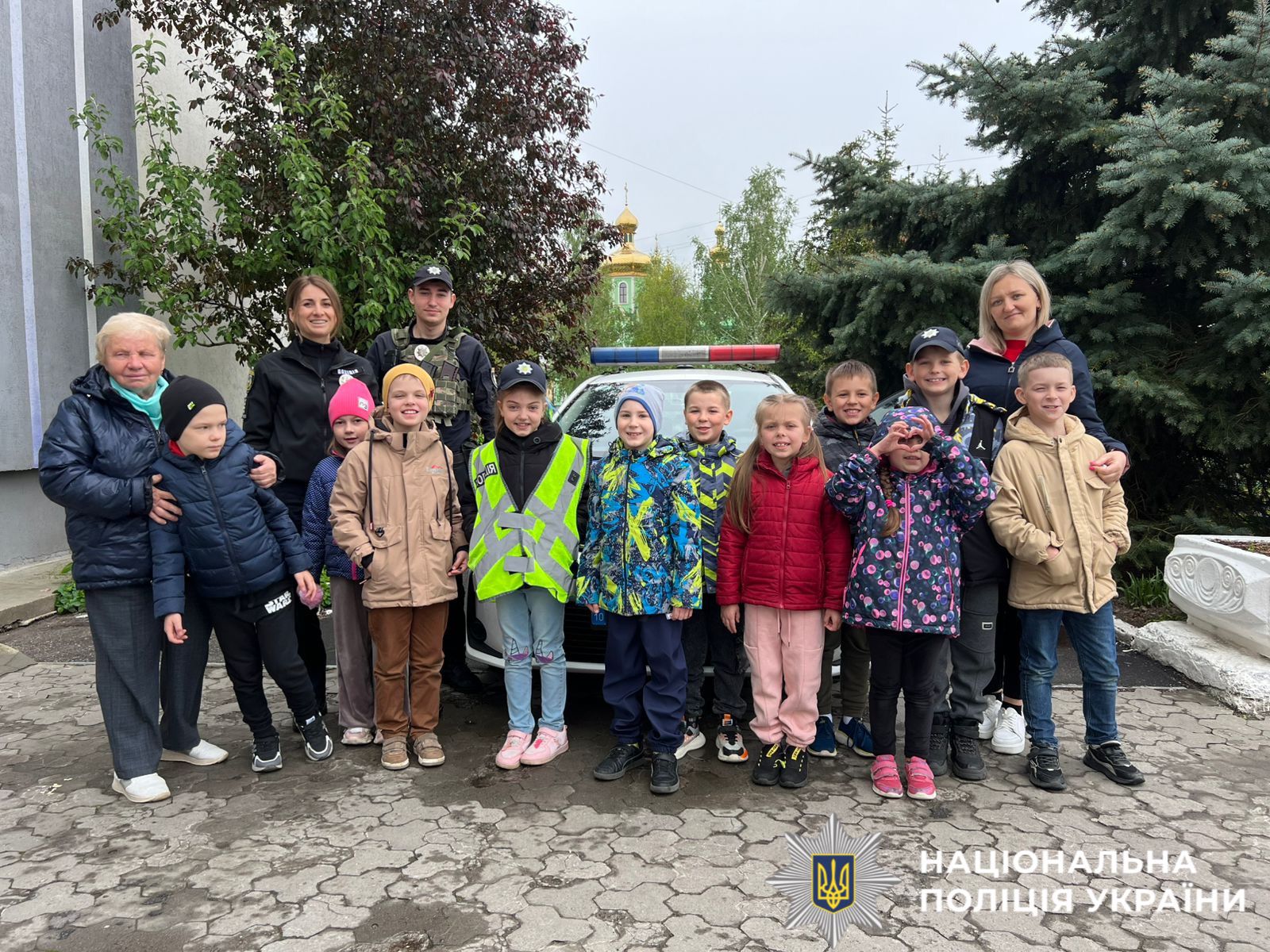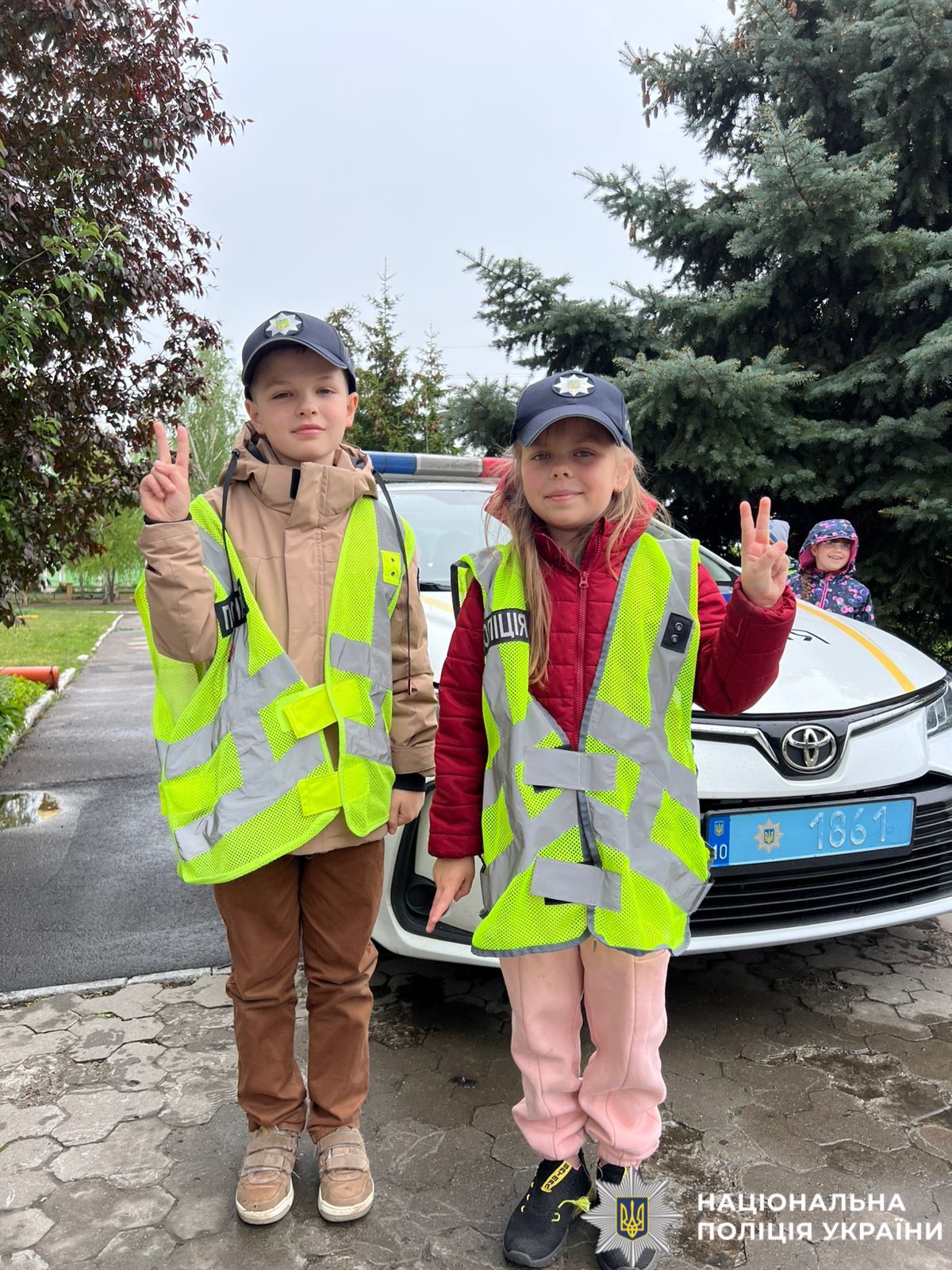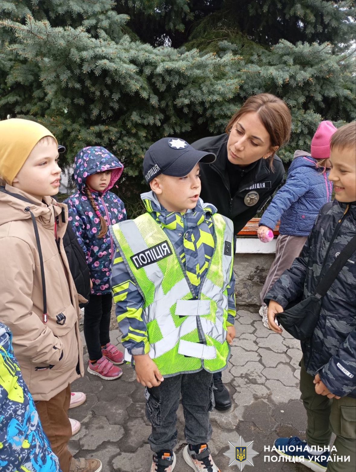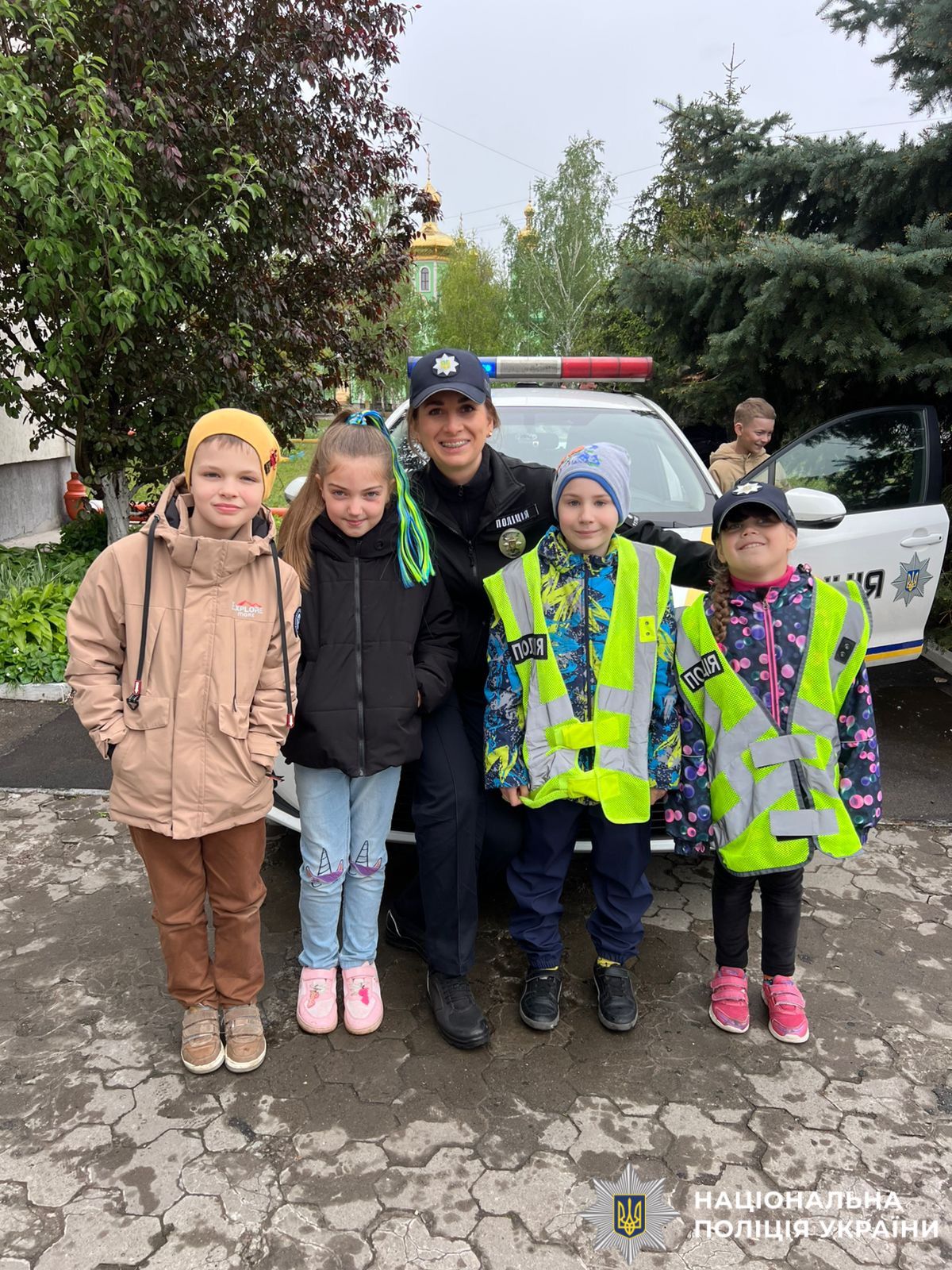 Правоохоронці на подвір'ї освітнього закладу в ігровій формі навчали дітей базовим правилам дорожнього руху. Поліцейські розповіли учням про дорожні знаки та яким чином регулюється рух транспорту. Крім того, вони наголосили дітям про важливість використання світлоповертальних елементів на одязі та категоричну заборону знаходитись на проїжджій частині у невстановлених місцях.