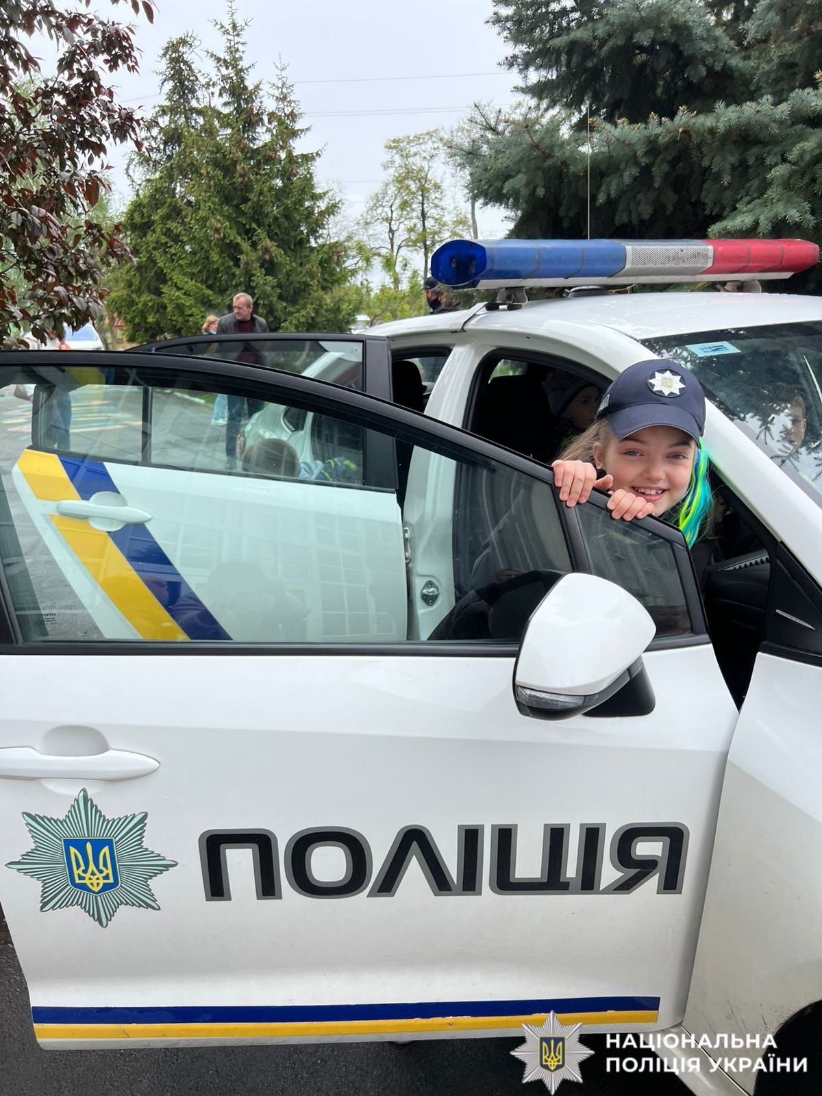 Неабиякий інтерес в школярів викликав службовий автомобіль, в якому вони змогли посидіти на місці водія та скористатися гучномовцем.