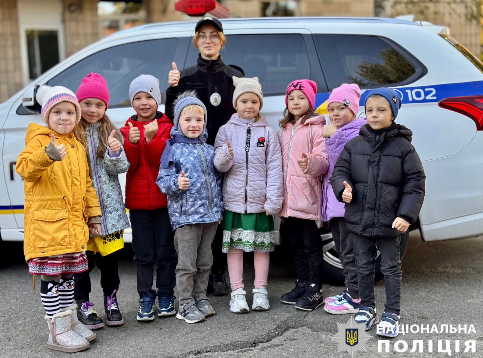 Поліцейські у форми гри поспілкувалися з малечою про дорожню грамоту та сигнали регулювальника. Діти отримали пізнавальну інформацію та із цікавістю розглядали службові автомобілі.