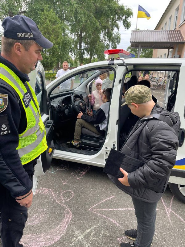Крім цього, діти мали змогу познайомитися зі службовим автомобілем поліцейського та спеціальними засобами, якими користуються співробітники поліції у повсякденній роботі.