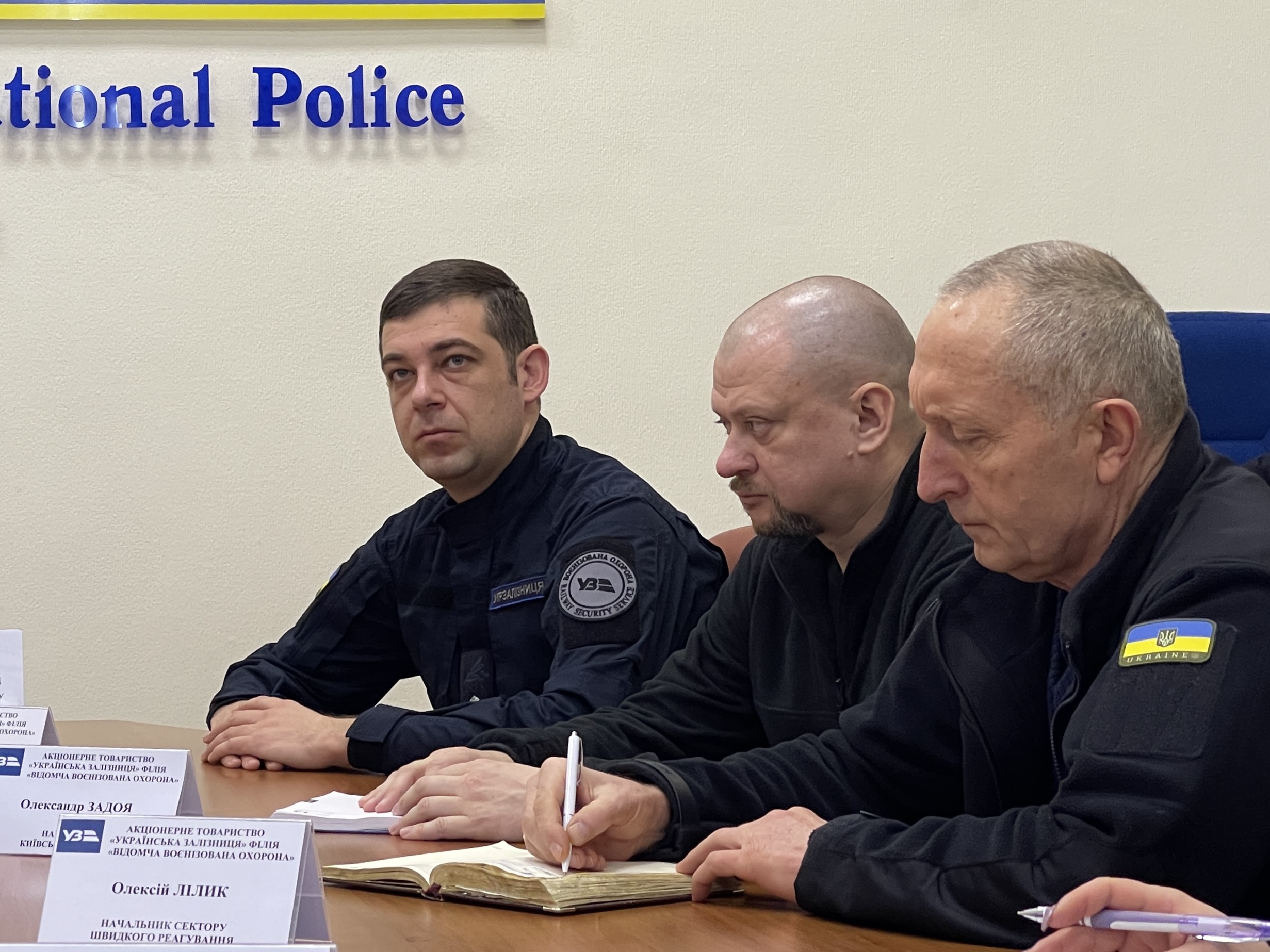 Під час зустрічі обговорили питання ефективного та своєчасного реагування на можливі правопорушення, які відбуваються на залізничному транспорті та вузлах Київської області.