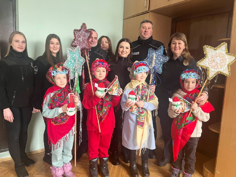 Діти з нетерпінням чекали на цей візит та підготували для правоохоронців різдвяні пісні та щедрівки. Крім того, юні гості вбралися у яскраві тематичні костюми та створили святковий настрій.
