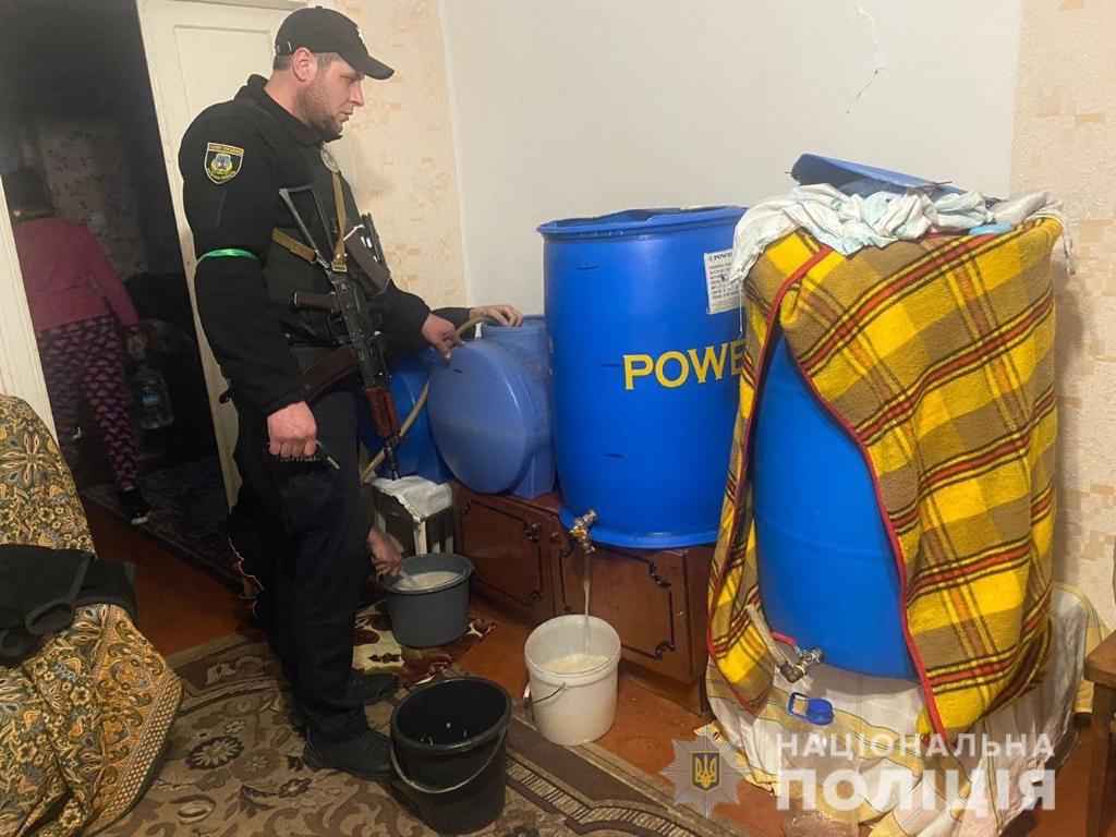 У жителя Ржищева поліцейські за місцем проживання виявили та знищили на місці 400 літрів рідини для виготовлення алкоголю та 40 літрів готового алкоголю.