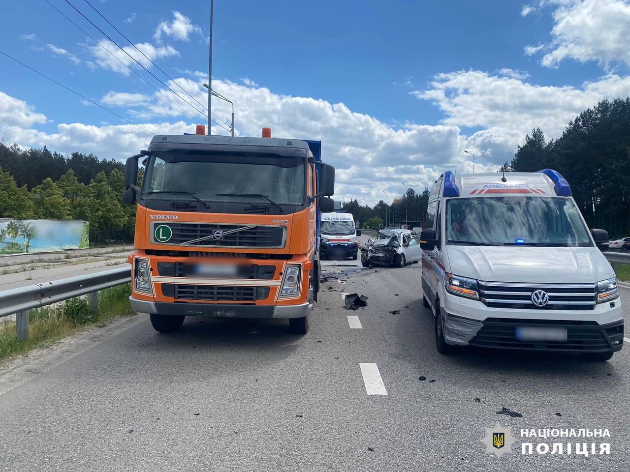 Попередньо встановлено, що 38-річна кермувальниця легковика «Kia», рухаючись автодорогою Н-01, допустила зіткнення з задньою частиною автомобіля «Volvo», який перебував у нерухомому стані в крайній смузі.