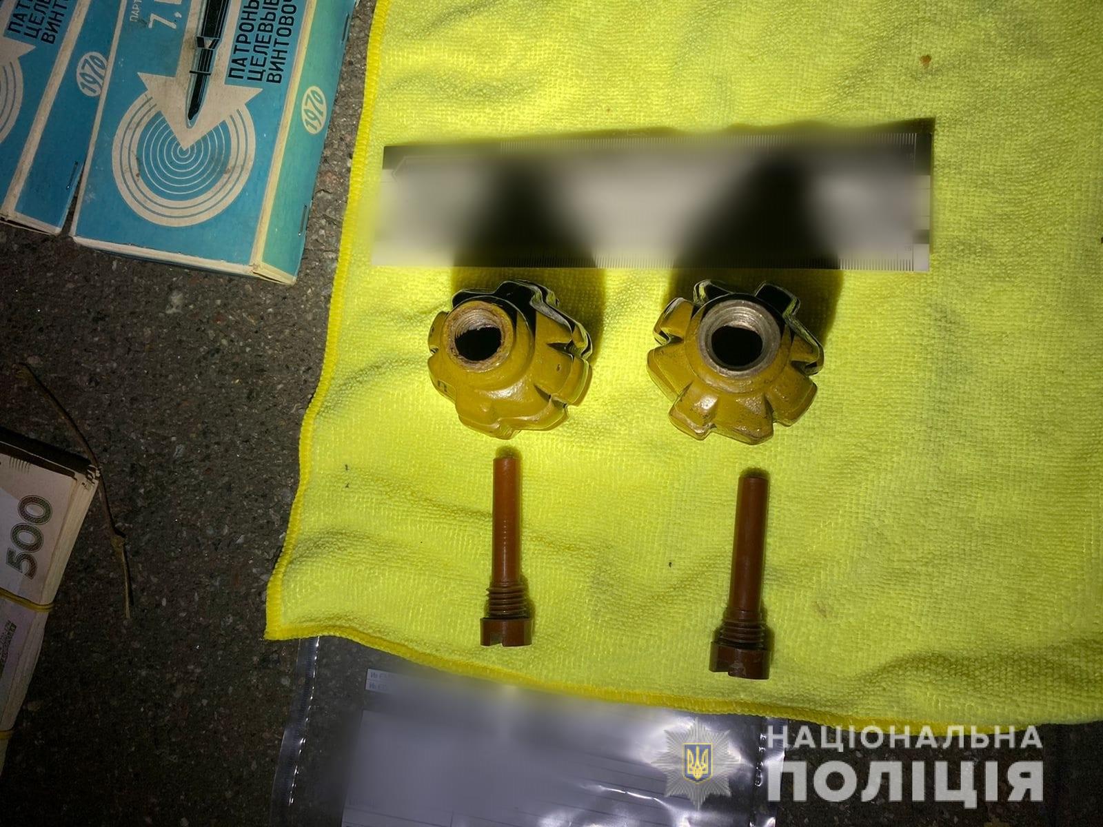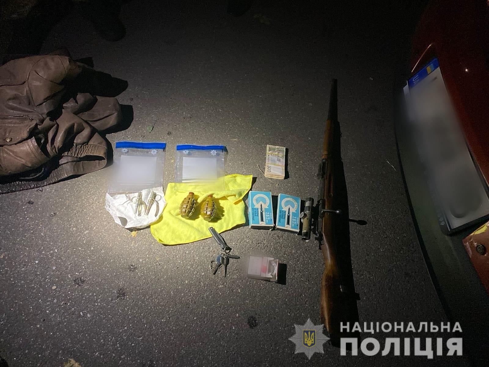 Під час обшуку у салоні автомобіля «Renault Megane» правоохоронці вилучили гвинтівку Мосіна, 2 гранати Ф-1, 2 запали «УЗРГМ» та 30 набоїв калібру 7.62.