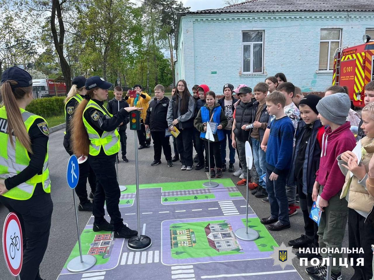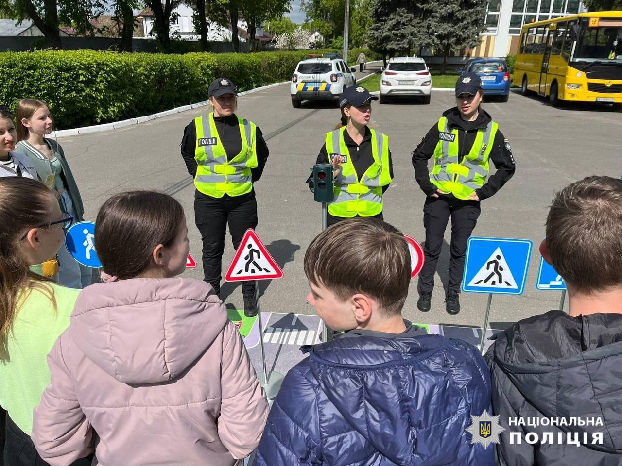Правоохоронці наголосили на правилах дорожнього руху, продемонструвавши дітям основні дорожні знаки. Також нагадали, як дбати про особисту безпеку, перебуваючи в суспільстві та наодинці.