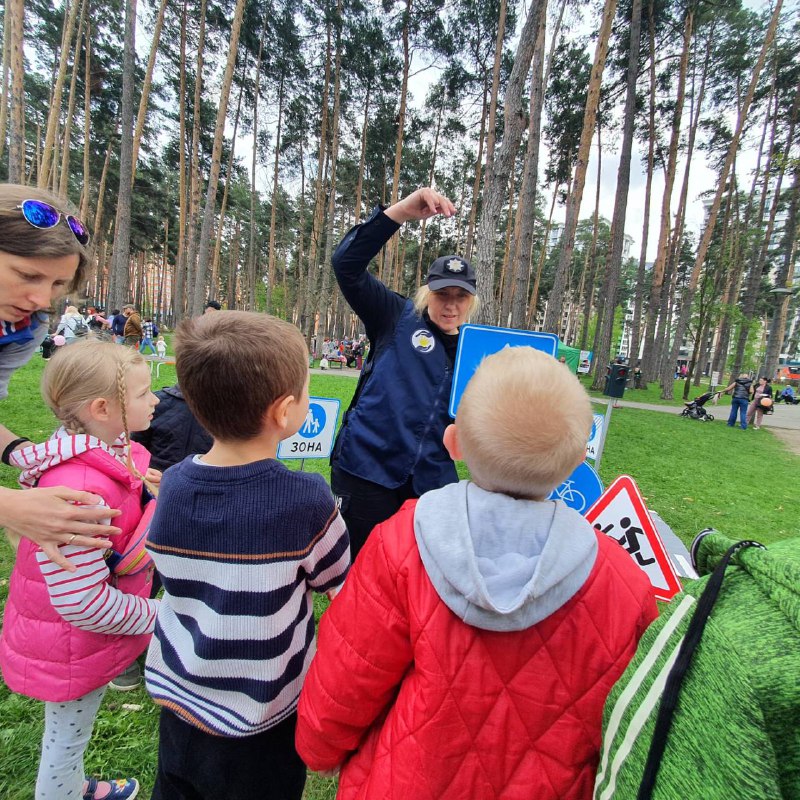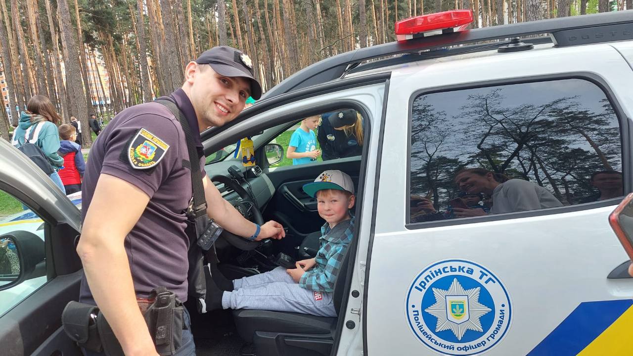 4 травня правоохоронці Бучанського управління поліції Київщини в рамках проєкту організували для дітей локацію із мініатюрами дорожніх знаків. Працівники поліції розповідали про правила дорожнього руху та безпеку під час воєнного стану.