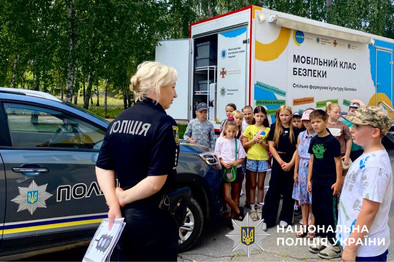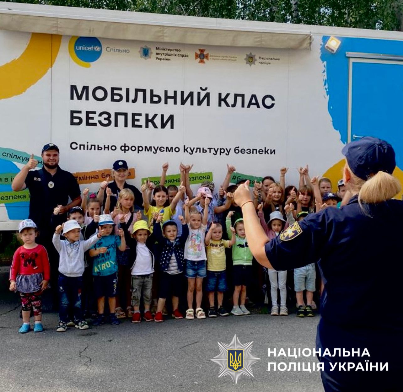 Діти побували всередині мобільного класу безпеки, де у доступній формі дізналися про відповідальність і важливість дотримання законів змалку. Разом із поліцейськими вони повторили дорожні знаки та їх значення, а також узяли участь в інтерактивній бесіді з безпечного руху.