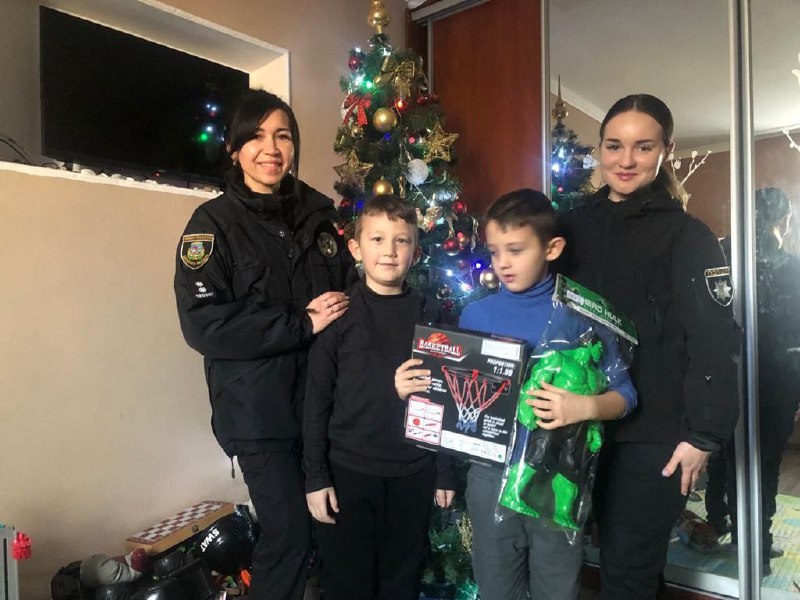 Правоохоронці здійснили мрію двох братиків: 5-річного Дмитра та 8-річного Дениса. Гості подарували омріяну іграшку та баскетбольне кільце.