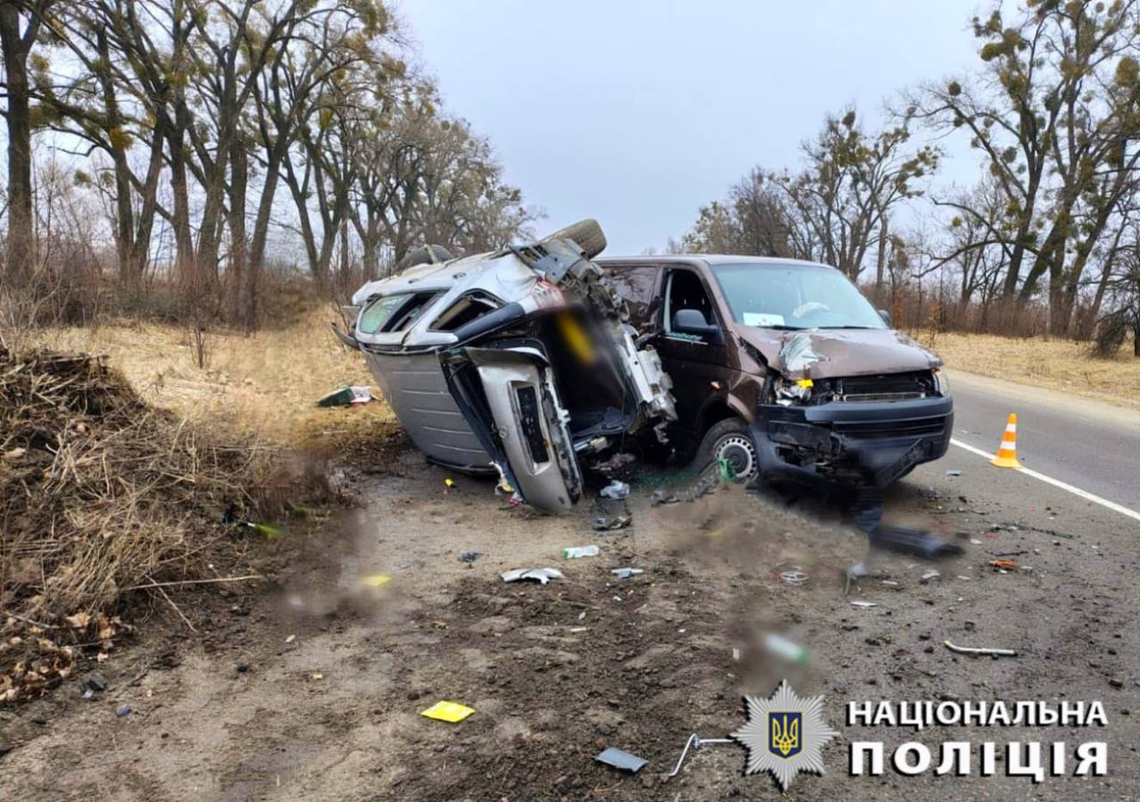 землі на узбіччі протилежної смуги руху, після чого авто відкинуло у Volkswagen Transporter, який проїжджав повз.