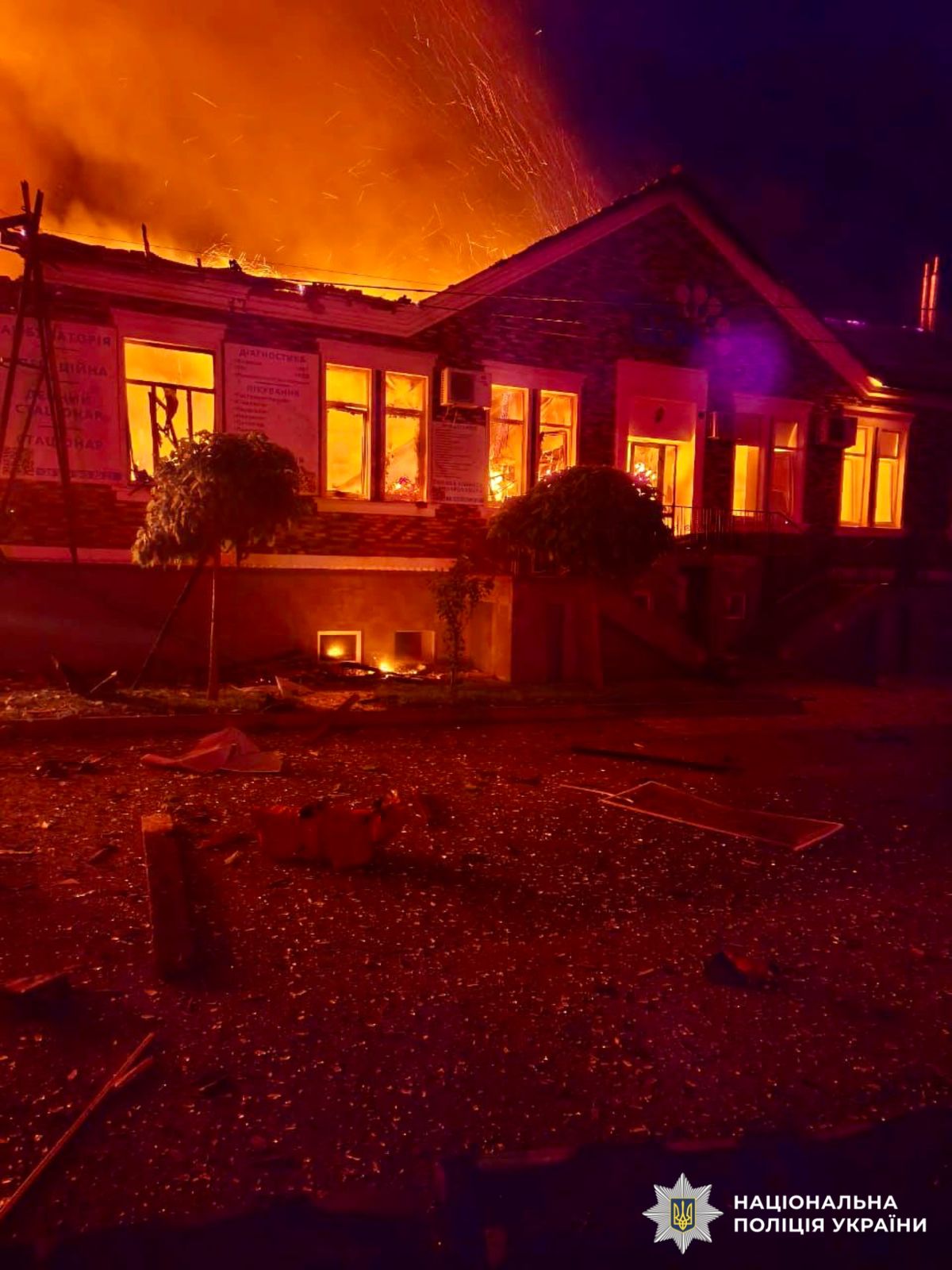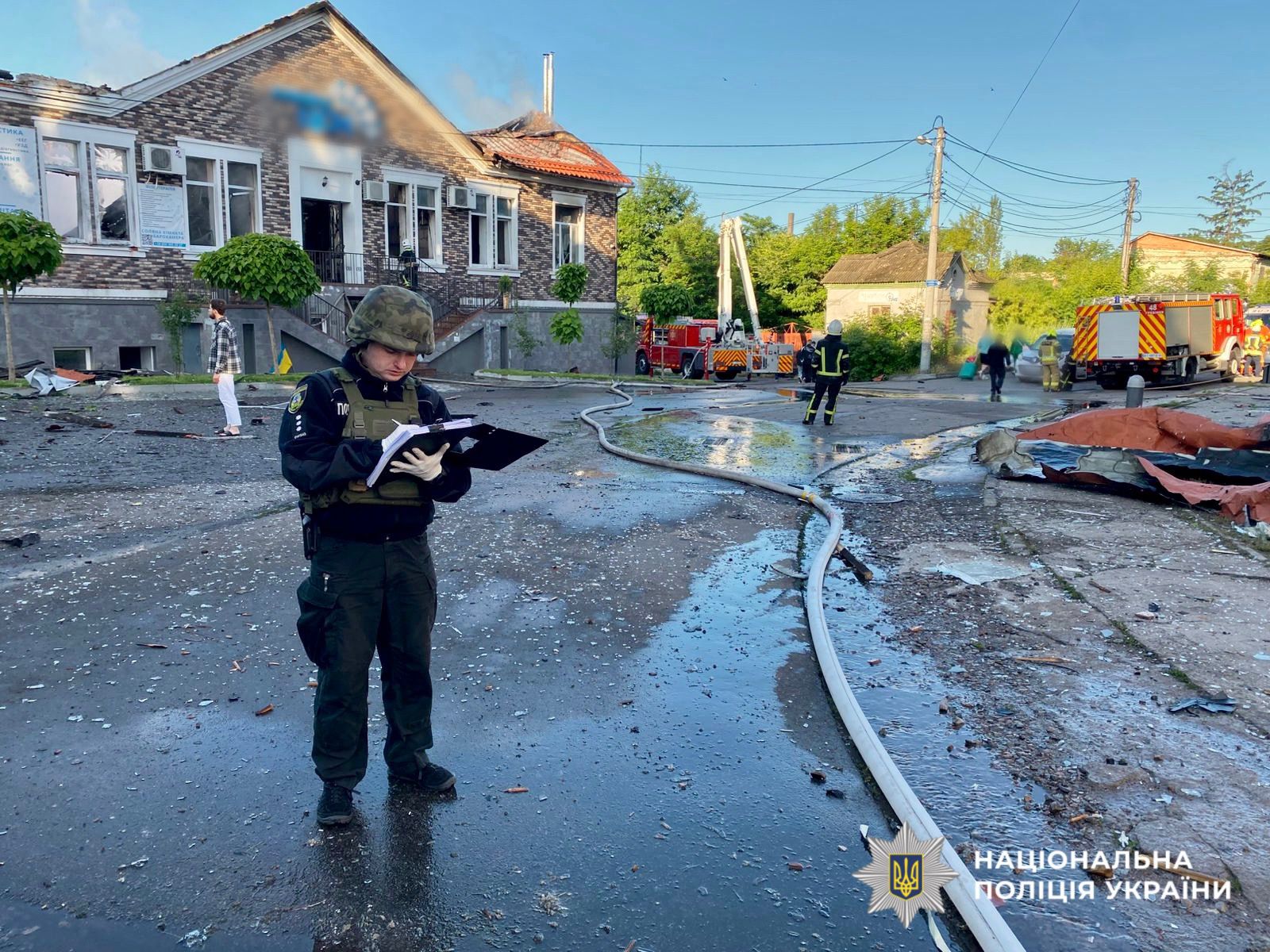 Станом на 7:40 у Білоцерківському районі пошкоджено чотири приватні, багатоквартирний будинки та підприємство. Крім того, зруйновано будівлю готелю, в якому знаходився медичний заклад. На жаль, 67-річна жінка від отриманих травм загинула. Також пʼятеро осіб госпіталізовано, серед яких двоє працівників ДСНС. Ще двом громадянам надано медичну допомогу на місці.