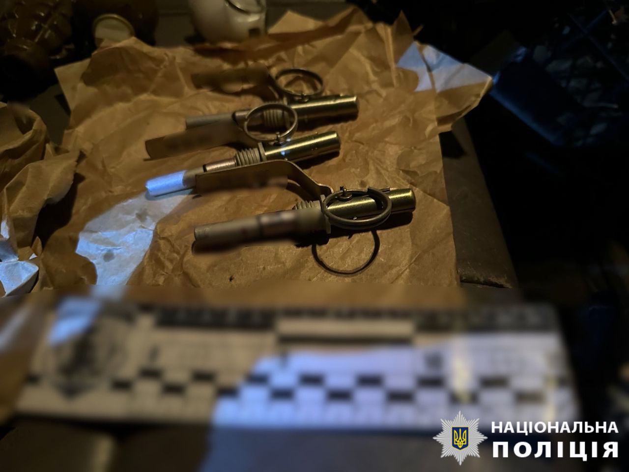 У ході невідкладного обшуку правоохоронці вилучили три корпуси гранати Ф1, три підривачі до ручних гранат типу УЗРГМ-2, один корпус гранати РГН та один запал до ручної гранати типу УДЗ.