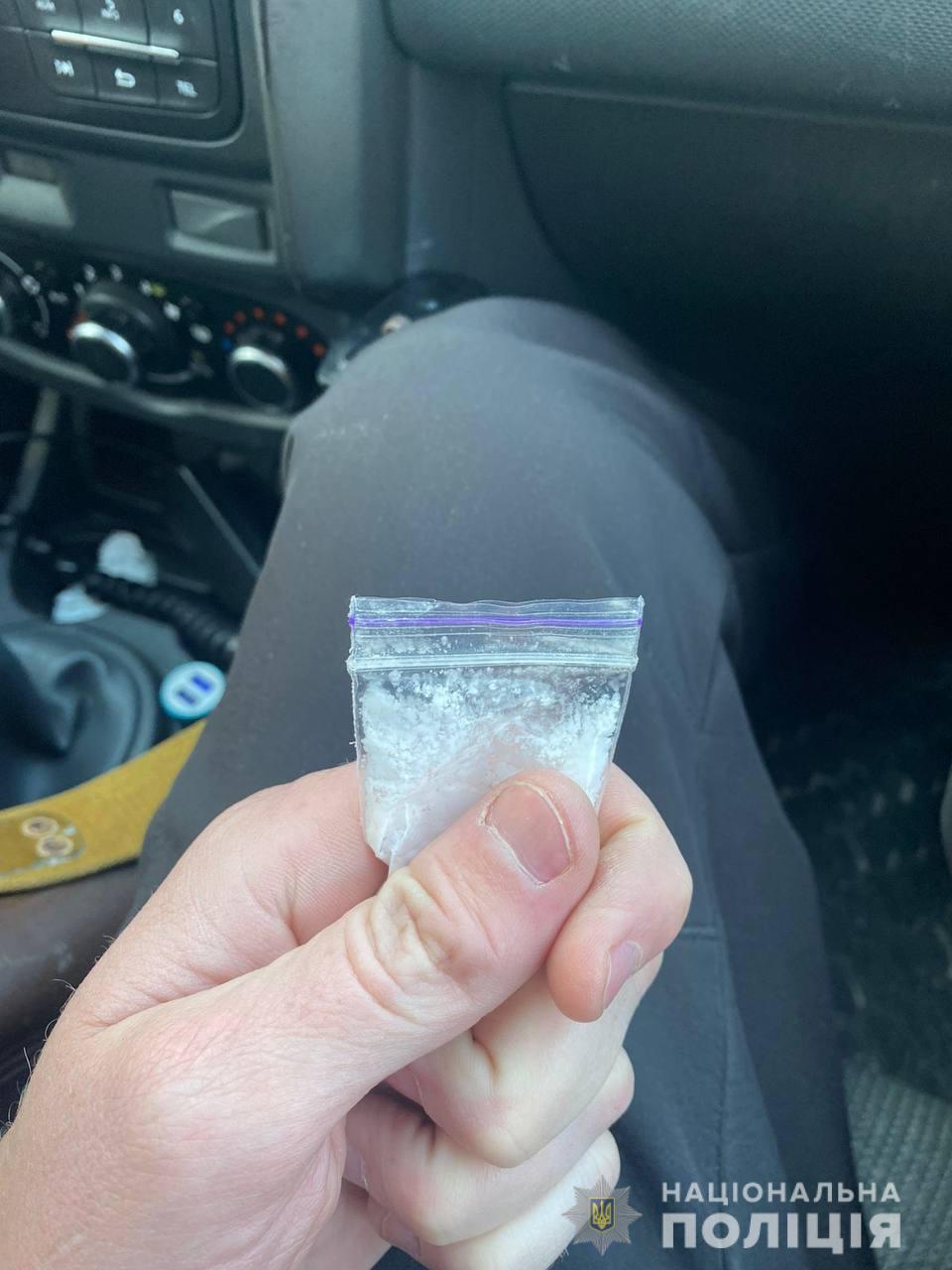 В подальшому правоохоронці з’ясували, що 32-річний чоловік перебуває у стані наркотичного сп’яніння, а при огляді речей, в його сумці виявили амфетамін, який той зберігав для власного вжитку.