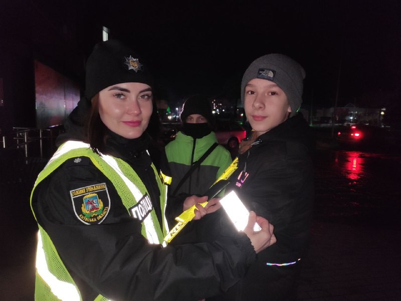 19 листопада інспектори ювенальної превенції розповідали дітям, як залишатись помітними у темну пори доби. Правоохоронці під час патрулювання роздавали юним жителям Борисполя світлоповертальні жилети та стрічки.