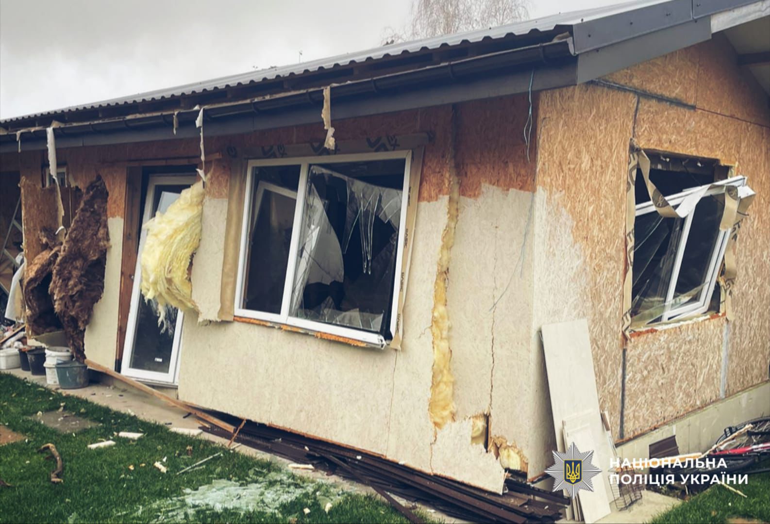 У Вишгороді пошкоджень зазнали два багатоповерхові та пʼять приватних будинків. Травмовано двох людей.