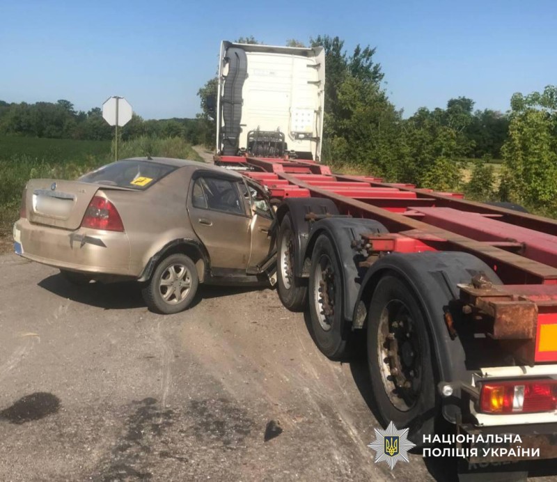 Правоохоронці попередньо з’ясували, що 57-річний водій вантажівки Volvo з напівпричепом виїжджав з прилеглої дороги на перехрестя та не надав перевагу в русі легковику Geely.