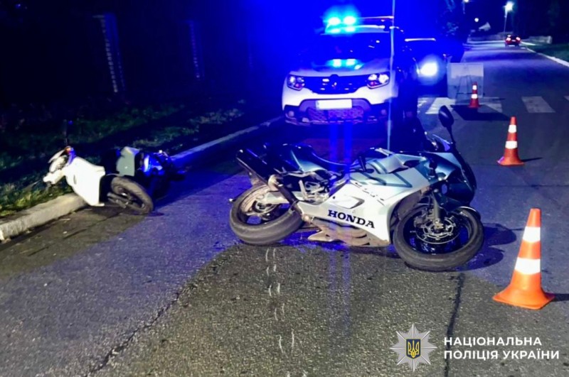 Поліцейські попередньо встановили, що 25-річний водій мотоцикла Honda здійснив зіткнення з кермувальником мопеда Yamaha, який рухався попереду в попутному напрямку.