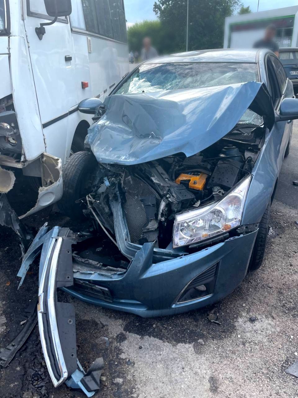 8 червня, 53-річний керманич "Chevrolet" не врахував дорожню обстановку та виїхав на зустрічну смугу руху, де скоїв зіткнення з рейсовим автобусом "I-VAN".