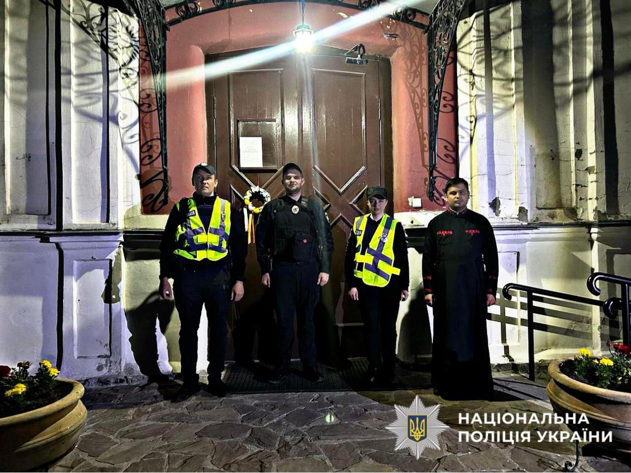 Для забезпечення публічного порядку під час проведення богослужінь поблизу храмів та церков залучені працівники поліції, військовослужбовці, представники муніципальних служб та академії внутрішніх справ.