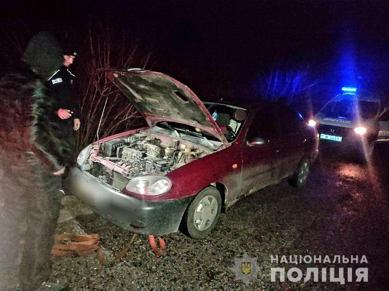 Правоохоронці поспішили до заявника, який чекав їх разом зі своєю дружиною та дитиною в автомобілі. Згодом вони допомогли відтягнути легковик до одного із місцевих блокпостів, де їм надали необхідну допомогу.