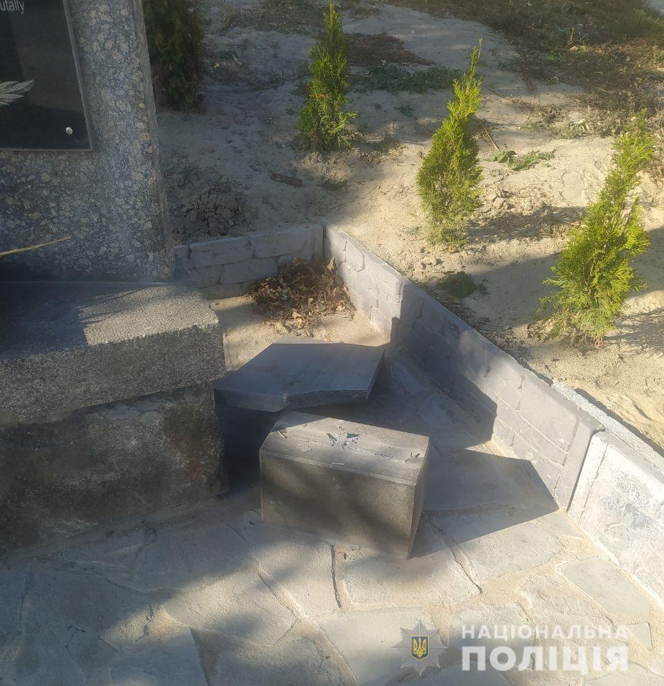 Виїхавши на місце події працівники слідчо-оперативної групи Обухівського районного управління поліції встановили, що біля пам'ятника «Жертвам Холокосту» пошкоджено меморіальну табличку.  На самому пам'ятнику пошкодження відсутні. Також правоохоронці з’ясували, що пошкодження були здійснені ще в п’ятницю, втім заяв до поліції не надходило.