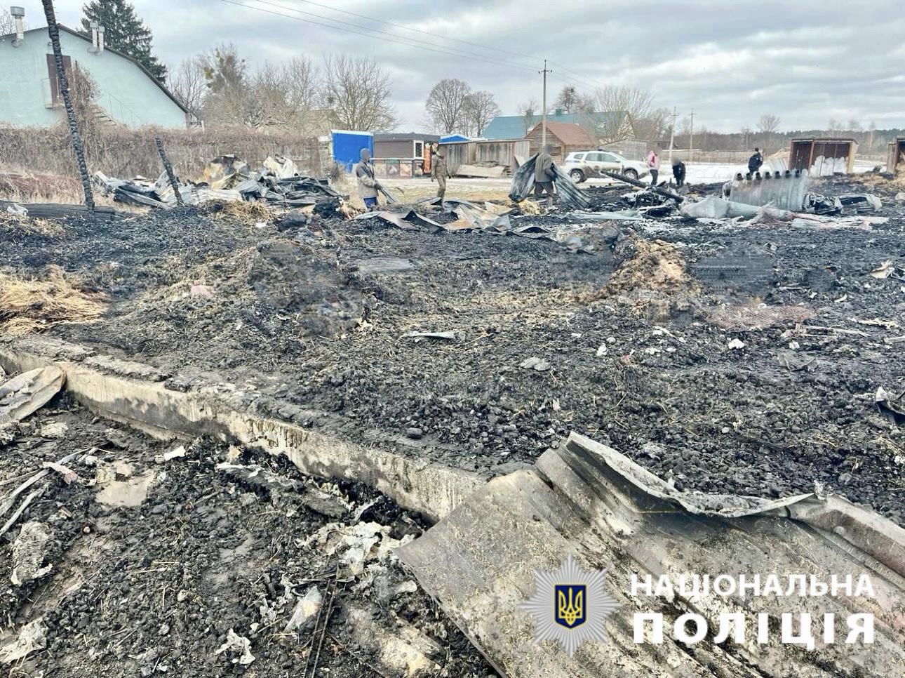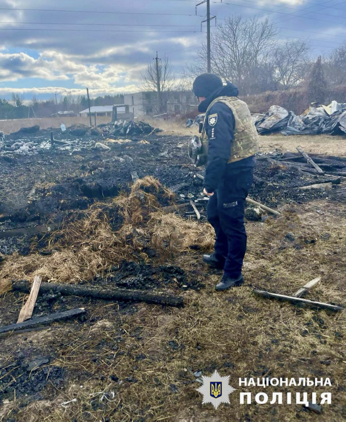 Поліція Київщини продовжує фіксувати наслідки атаки рф: поранення отримав місцевий житель, загинули свійські тварини