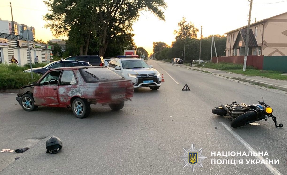 Внаслідок ДТП, водій мототранспорту отримав тілесні ушкодження та був госпіталізований.