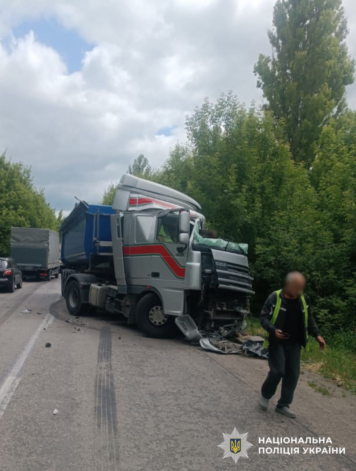 У результаті зіткнення 36-річного кермувальника вантажного автомобіля госпіталізували з тілесними ушкодженнями.