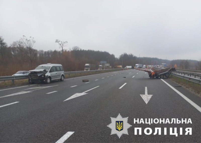 Попередньо правоохоронці встановили, що 23-річний водій автомобіля Volkswagen не обрав безпечну швидкість та здійснив зіткнення з припаркованими спецтехнічним причепом, який стояв у правій смузі для руху та огороджував місце проведення дорожніх робіт. Внаслідок удару, причепом було травмовано працівника дорожньої служби.