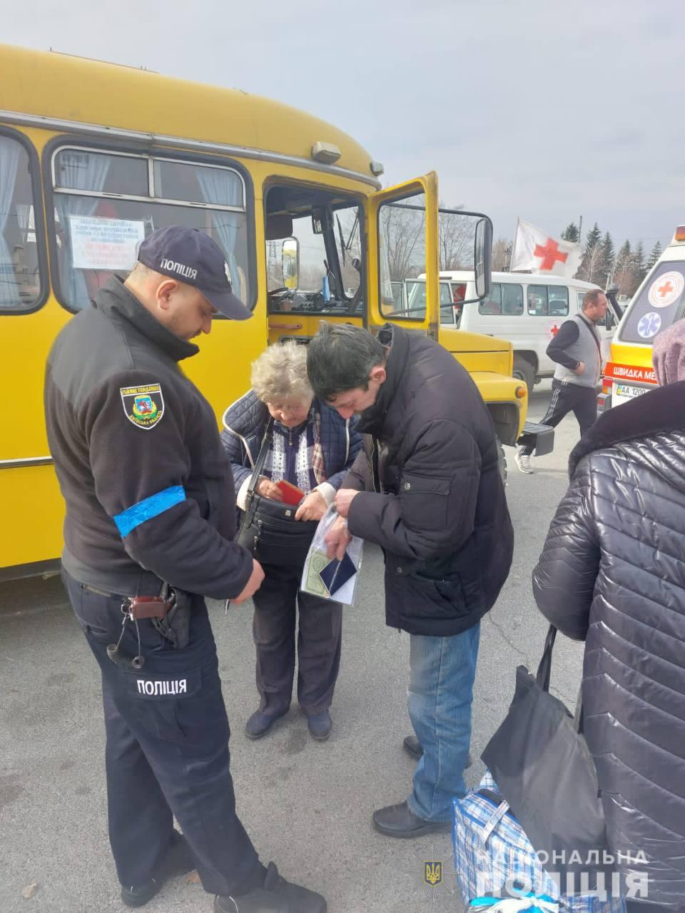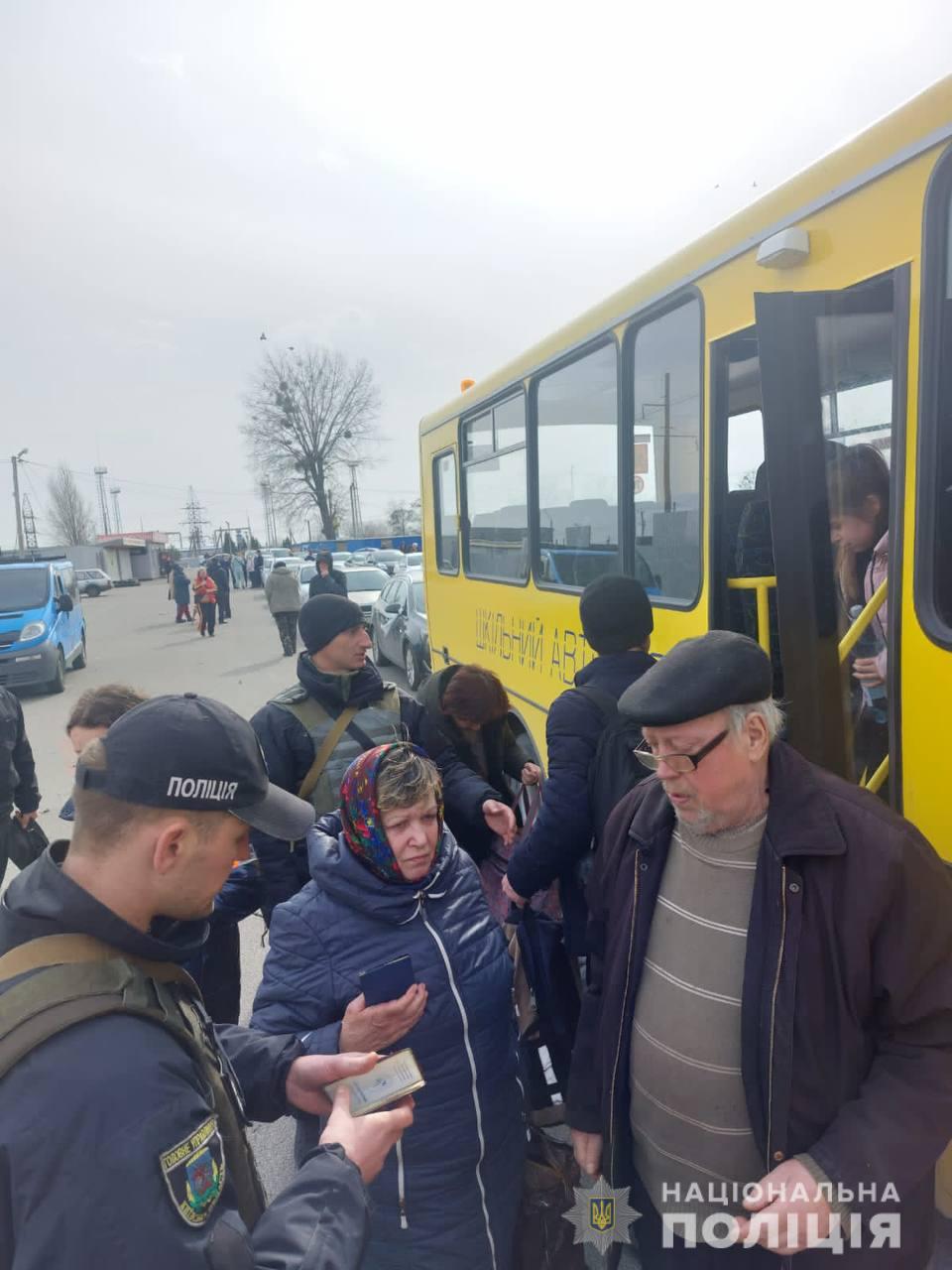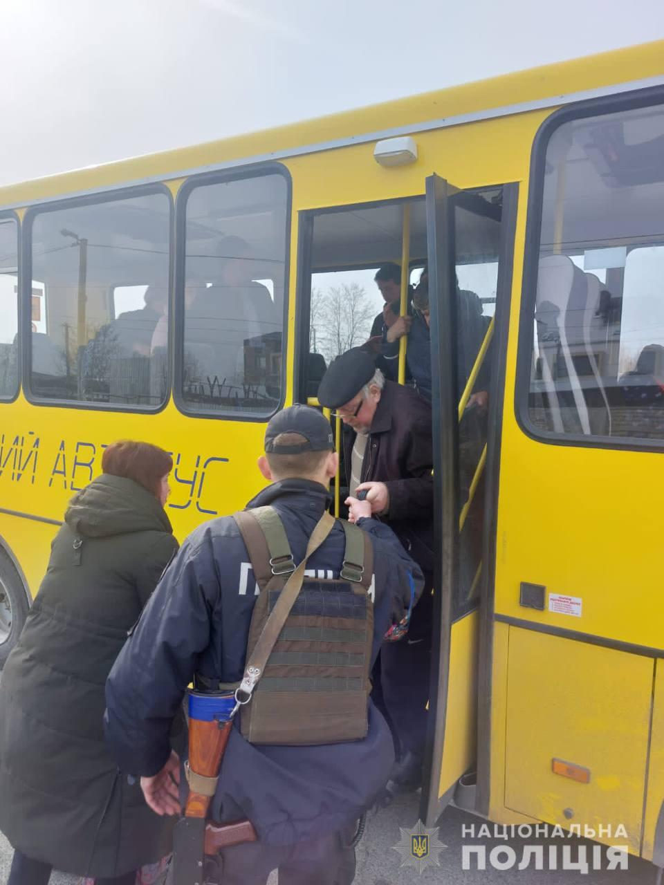 26 березня співробітники поліції разом з органами місцевого самоврядування, рятувальниками та Червоним Хрестом забезпечили безпечний виїзд автобусної колони та понад 20 автомобілів з громадянами. Поліцейські допомогли врятуватись 150 людям з дітьми, наймолодшій з яких лише 2 місяці.