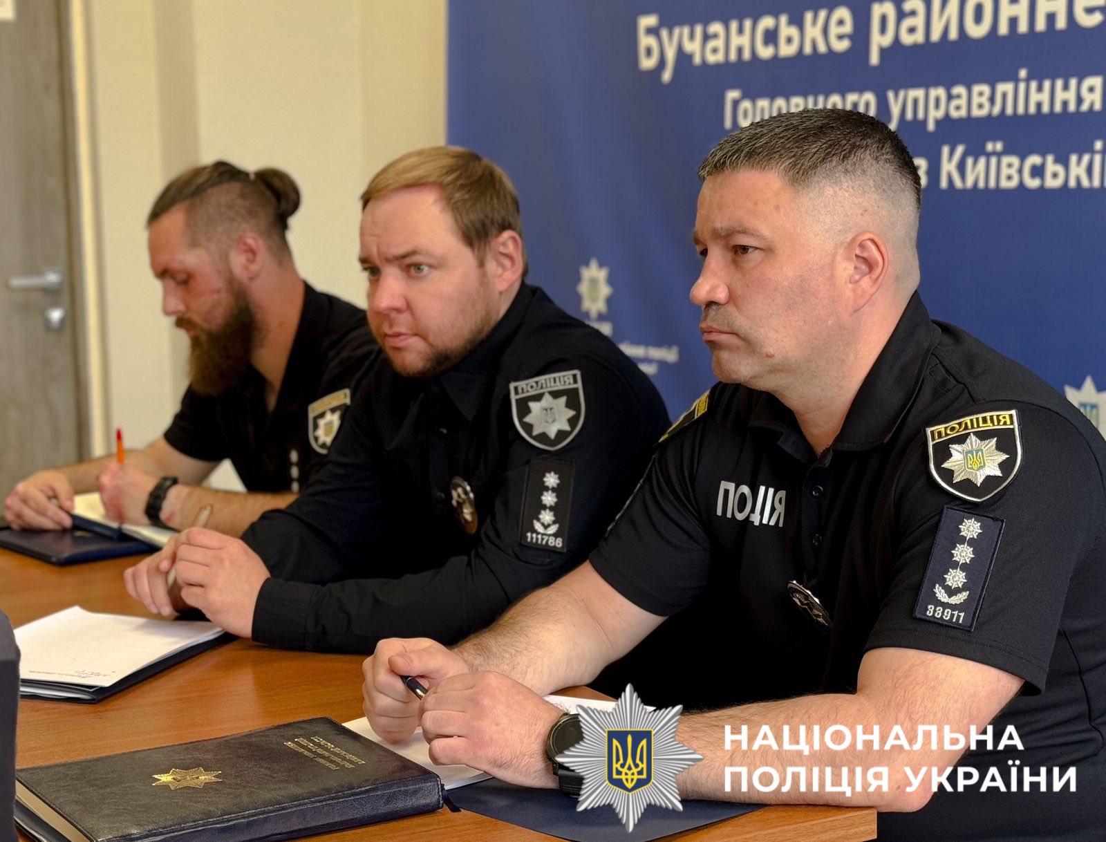 На заході були присутні керівник поліції Бучанщини Андрій Маланчук спільно із заступником, начальник управління кадрового забезпечення поліції Київщини Кирило Андрєєв, помічник начальника поліції Київщини з питань ветеранської політики Віктор Мазніченко, а також представники ДСНС, територіального сервісного центру МВС, центру зайнятості, Центру надання адміністративних послуг та пенсійного фонду.