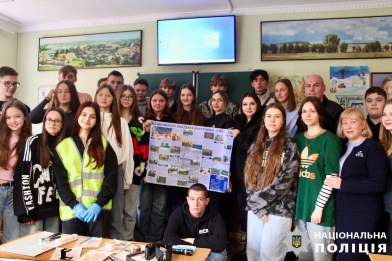 Інспекторка кадрового забезпечення розповіла їм про умови вступу до Національної академії внутрішніх справ, про факультети та спеціальності університету, за якими здійснюється підготовка фахівців. Під час перегляду відео діти мали змогу дізнатися про специфічні умови навчання та курсантське життя в академії.