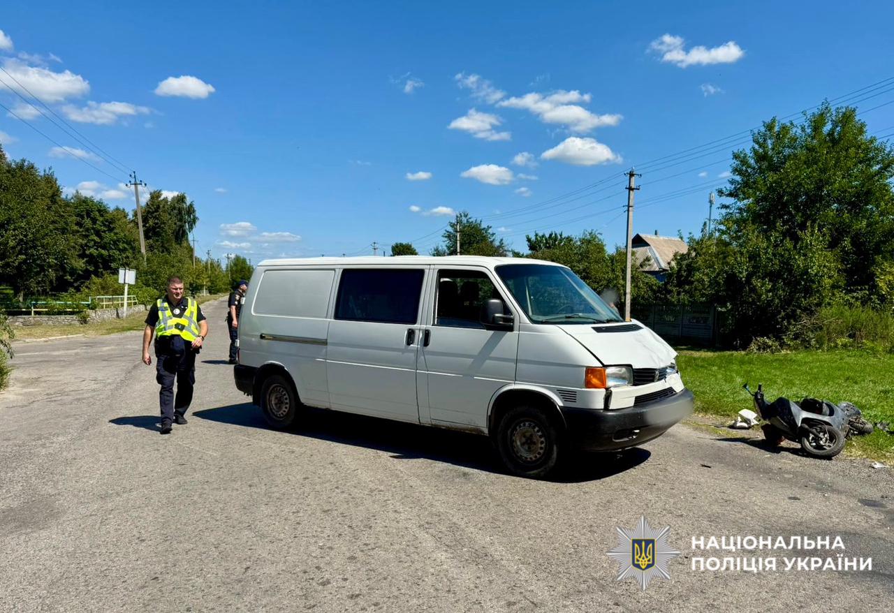 Поліцейські, які працювали на місці події попередньо встановили, що 14-річний кермувальник мопеда виїжджав з другорядної дороги на головну. Хлопець здійснив зіткнення з 64-річним водієм мікроавтобуса Volkswagen, що рухався головною дорогою.