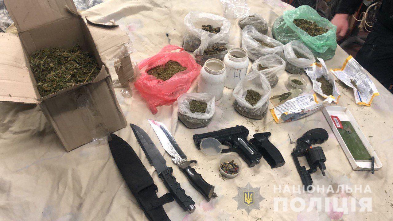 26 березня, під час відпрацювання в будинку 36-річного жителя Василькова поліцейські виявили револьвер, понад 30 набоїв до нього, два ножі та майже кілограм канабісу.