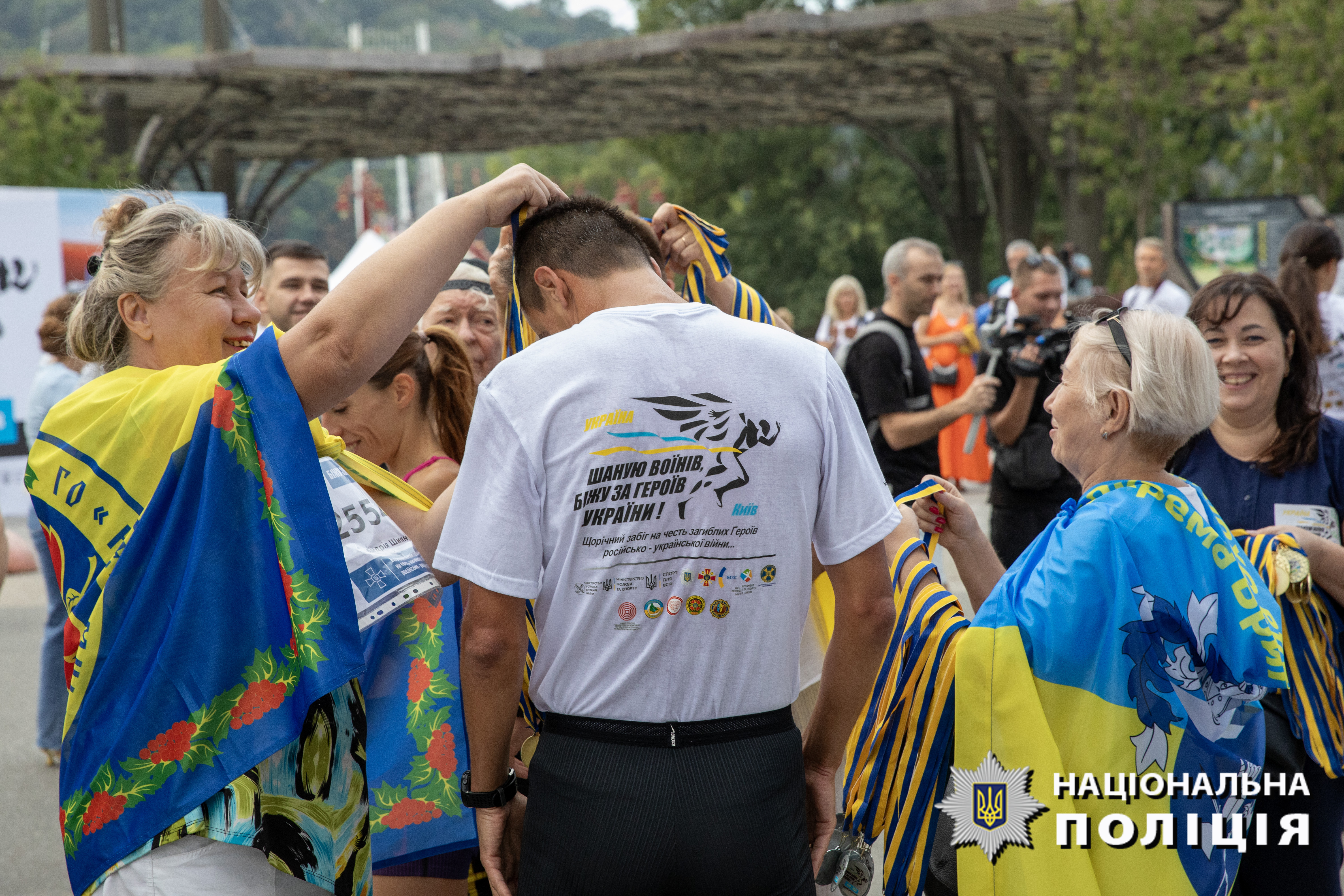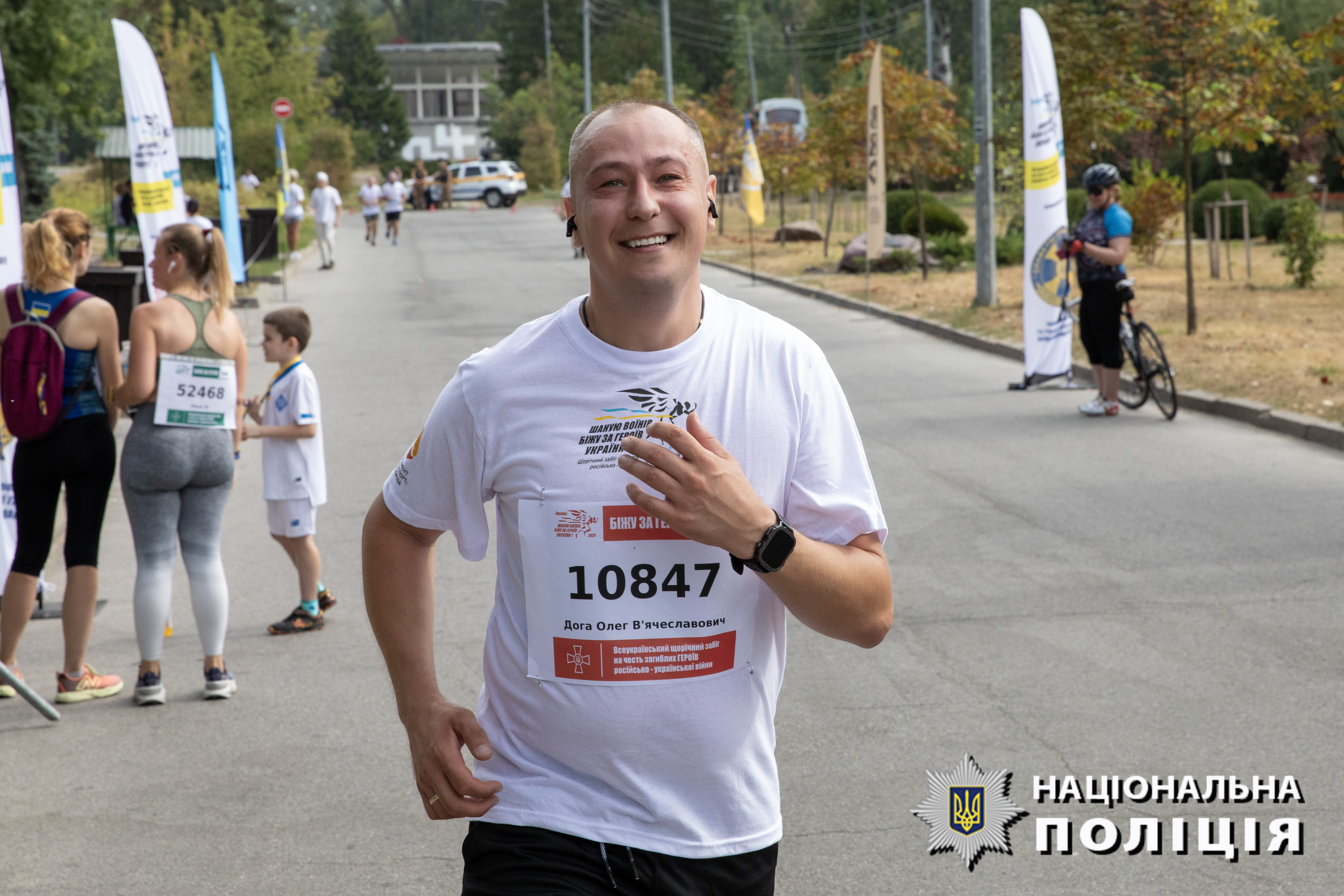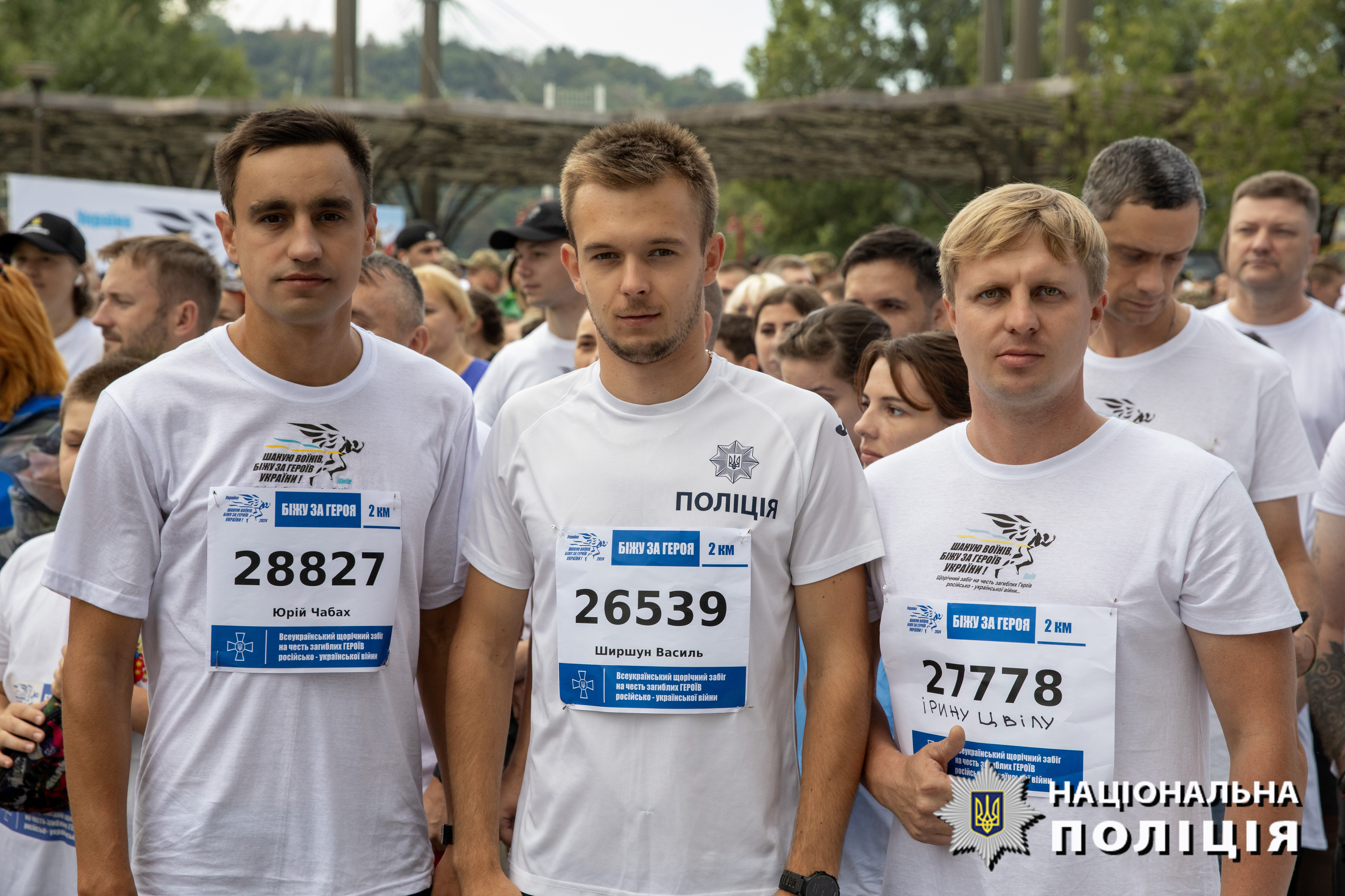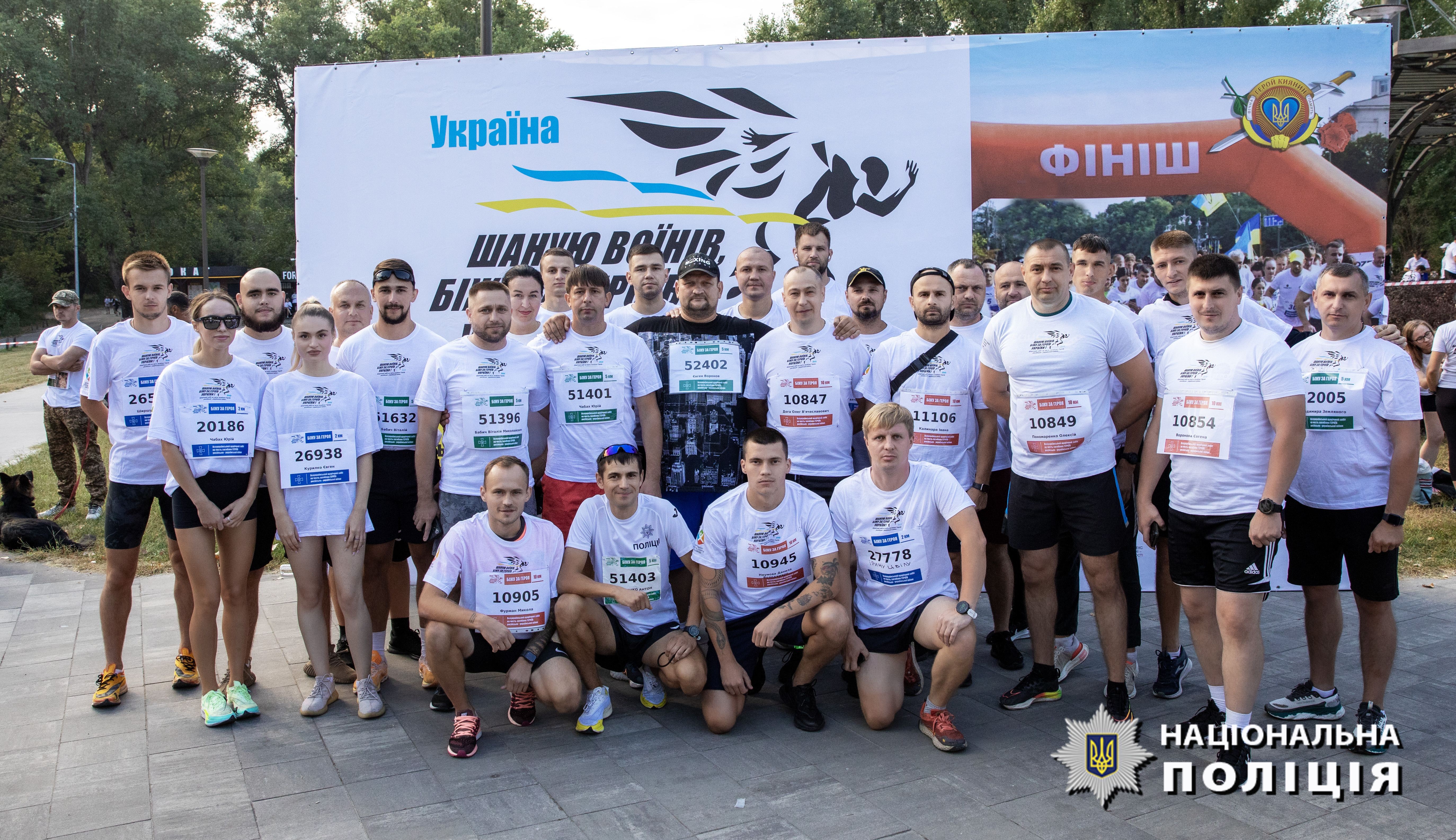 Сьогодні, 31 серпня, поліцейські Київщини долучилися до памʼятного забігу, який проводиться щорічно по всій території України. Цей захід присвячений вшануванню пам'яті воїнів, які загинули під час російсько-української війни.