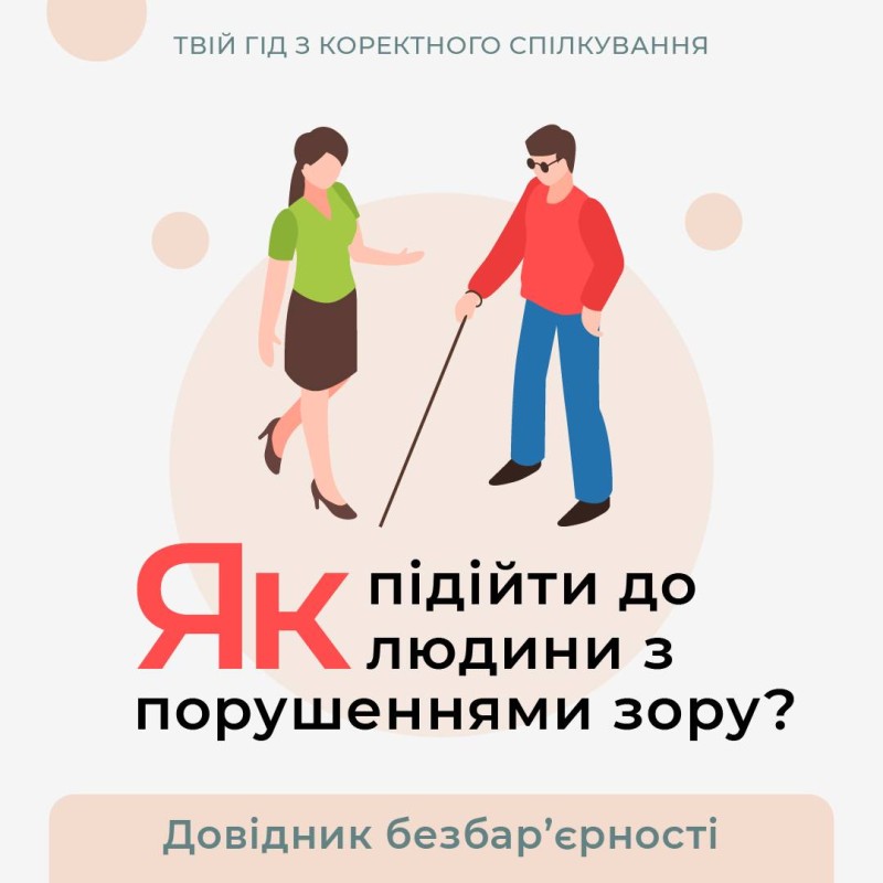 Щоб якомога більше людей цієї етики дотримувалися, розпочну серію публікацій, спираючись на поради довідника. І сьогодні про те, як взаємодіяти з людиною із порушенням зору: підійти, провести по вулиці, оминути разом перешкоди.