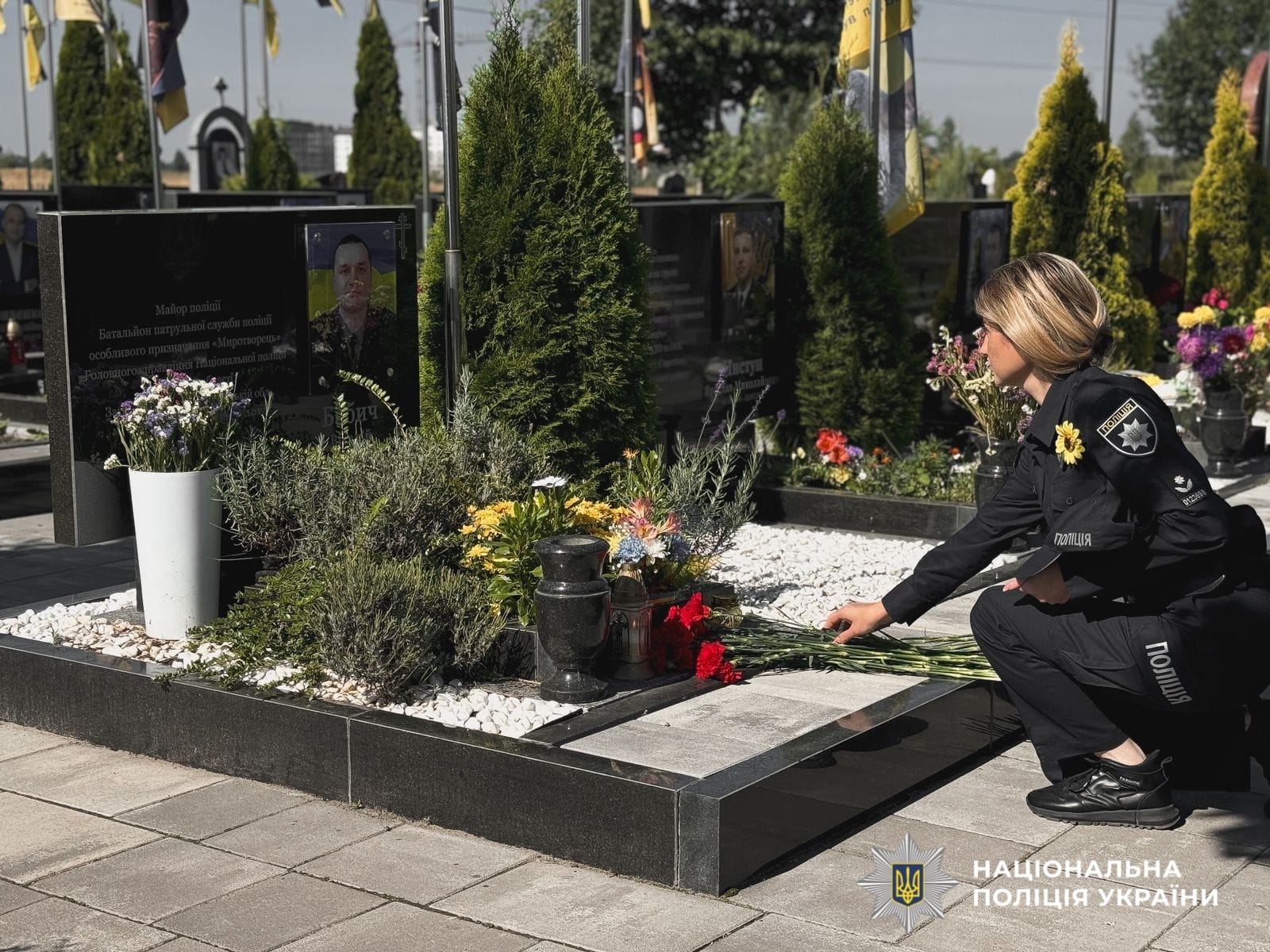 Правоохоронці поклали квіти до підніжжя памʼятників та місць памʼяті захисників, розташованих на території області.