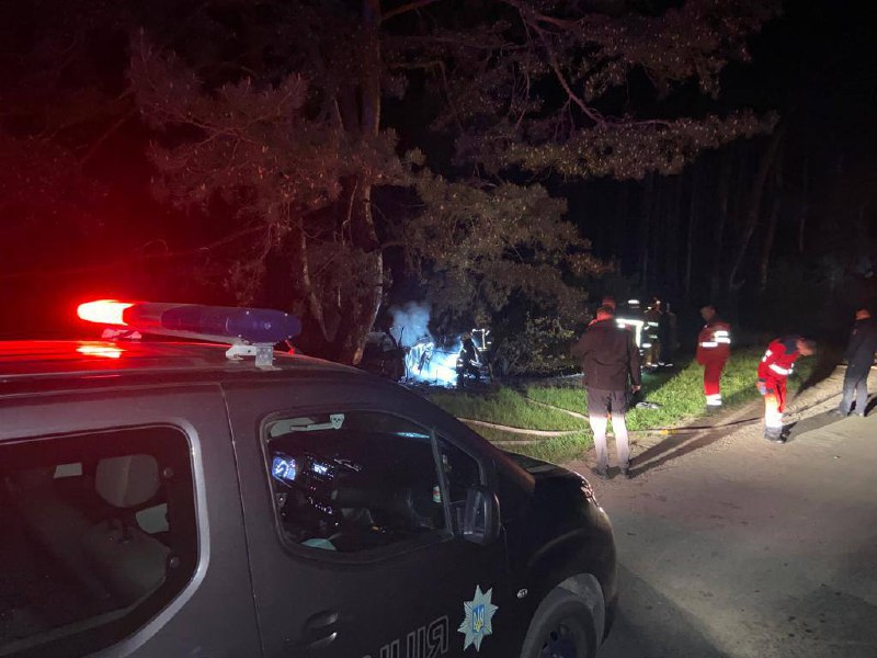 Водій автомобіля "Doodge" не впорався з керуванням, з'їхав з дороги та зіткнувся з деревом, після чого авто загорілося.