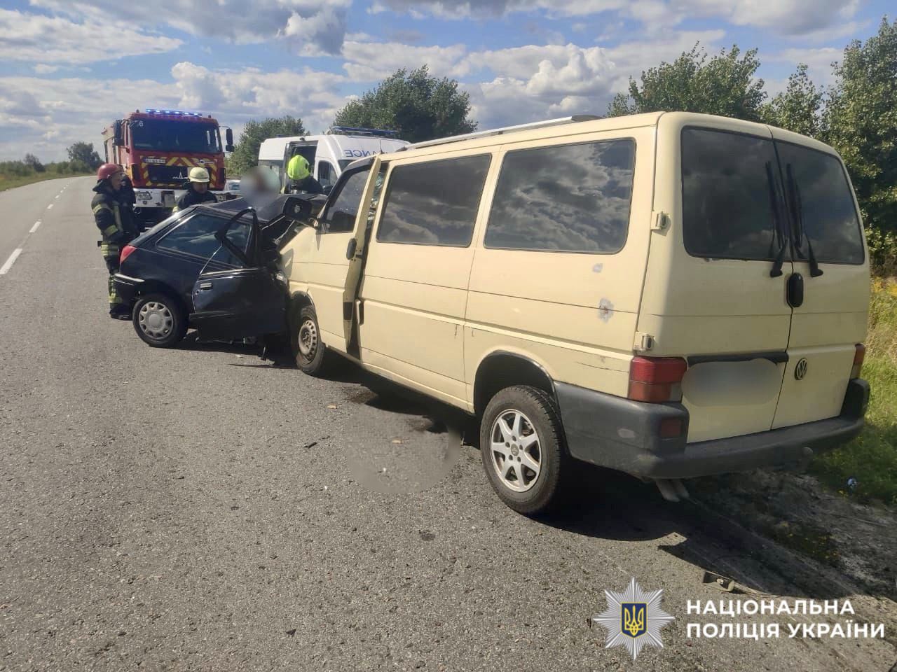 За попередніми даними, 58-річна водійка Ford Fiesta, рухаючись до села Гоголів, здійснила виїзд на зустрічну смугу руху та скоїла зіткнення з автомобілем Volkswagen Transporter, який рухався в зустрічному напрямку.