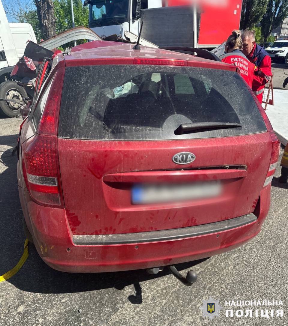 Коли вантажівка здійснювала поворот ліворуч на світлофорі, легкове авто вʼїхало йому під причіп.