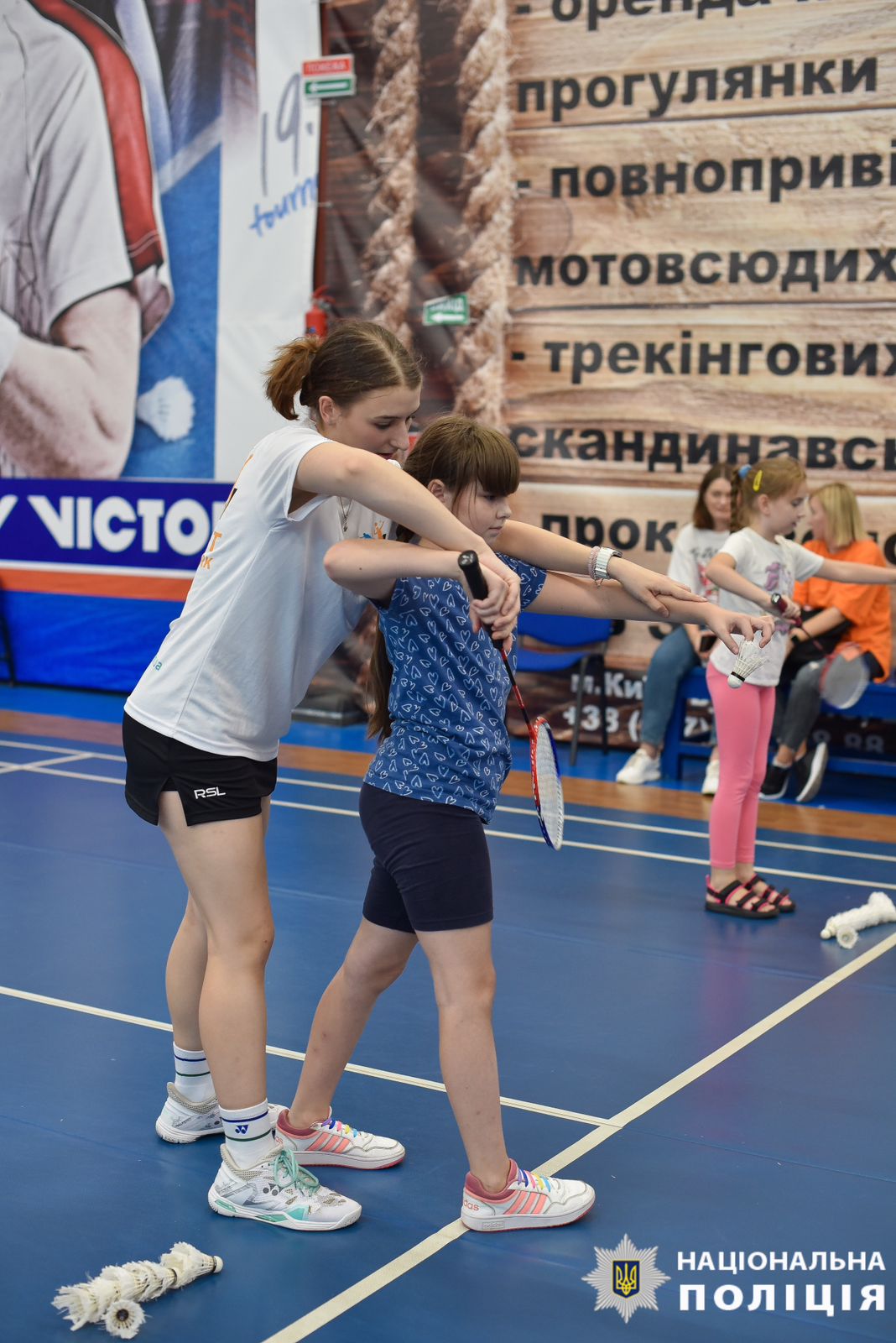 Поліцейські провели з школярами руханку та нагадали, що фізичні вправи зміцнюють імунітет і роблять тіло сильнішим. Окрім цього діти мали змогу спробувати свої сили у п'яти різних видах спорту, таких як: бадмінтон, піклбол, падбол, паддл та настільний теніс.