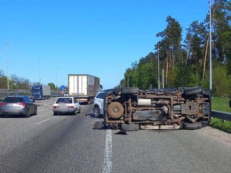 Від удару позашляховика перекинуло на бік: Поліцейські Київщини задокументували ДТП на Житомирській трасі